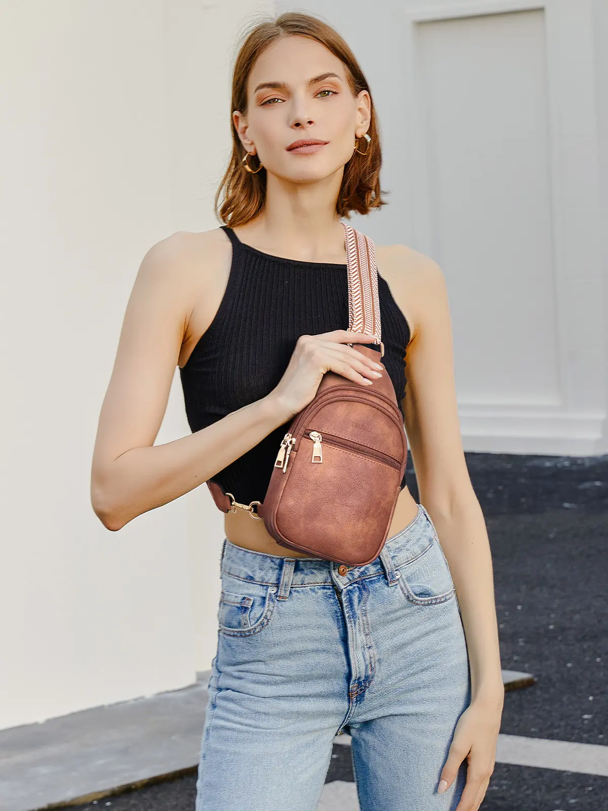 5. Telena Sling Bag for Women Crossbody Fanny Packs for Women Leather Sling Chest Bag with Adjustable Strap Sling Purse