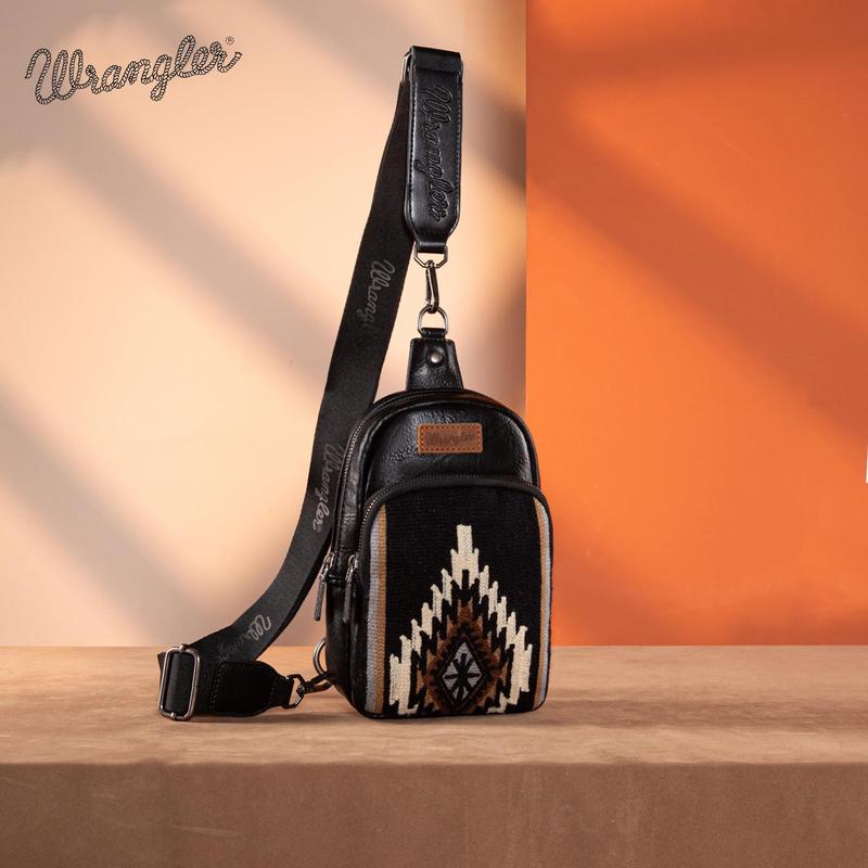 ·Wrangler aztec knitted sling crossbody bag designed for the modern explorer