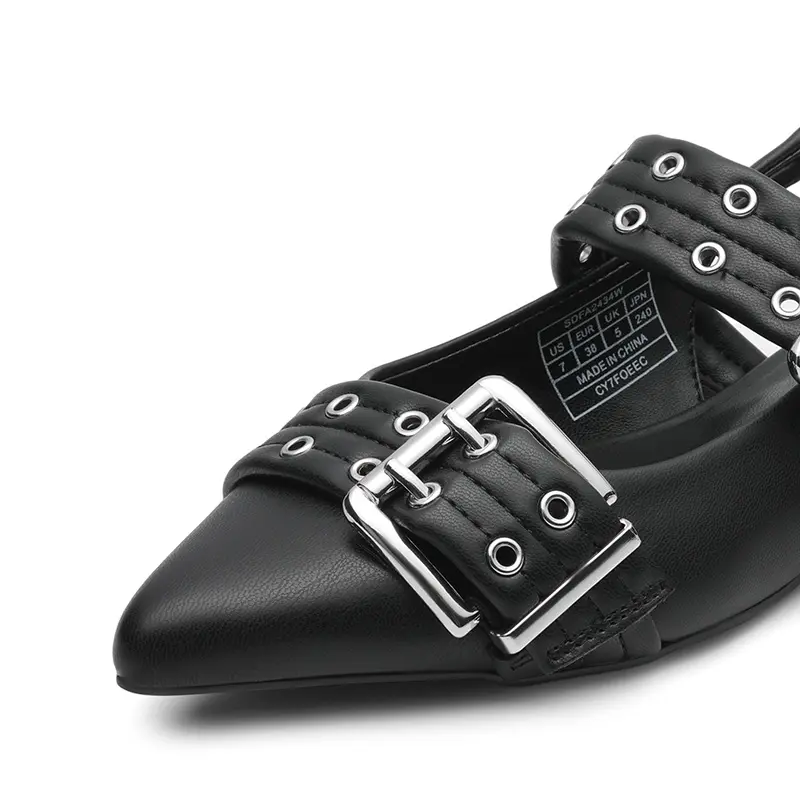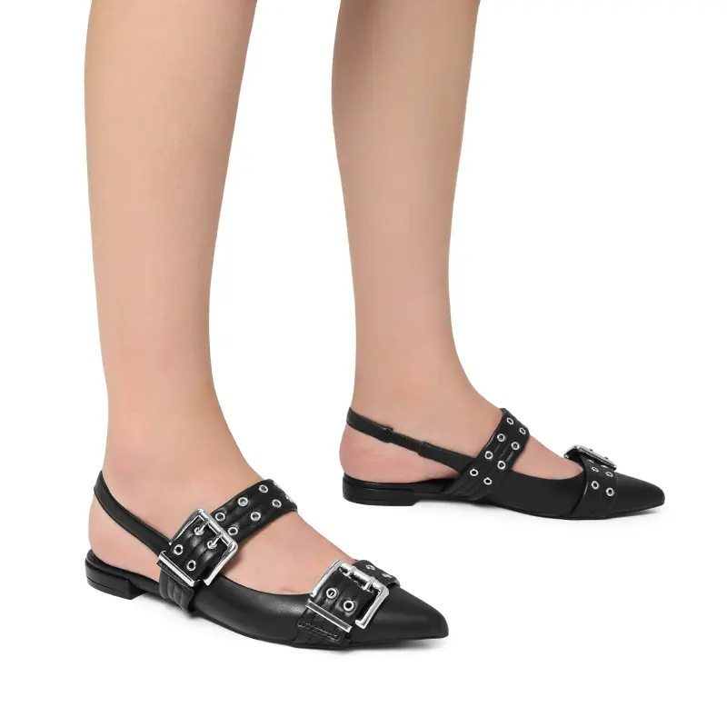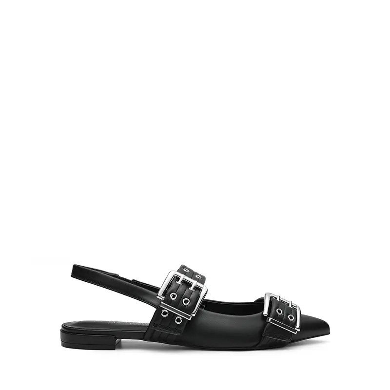 With double straps that offer an on-trend look, these buckle flats add an edge to your outfit. The slip-on style with an open-back slingback strap makes them easy to wear and ensures a secure fit. Complete with eye-catching and oversized buckle detail, these flats exude a bold vibe. Whether you're strutting down the streets or tackling your daily commute, these women’s flats are ideal for making a statement while staying comfortable.