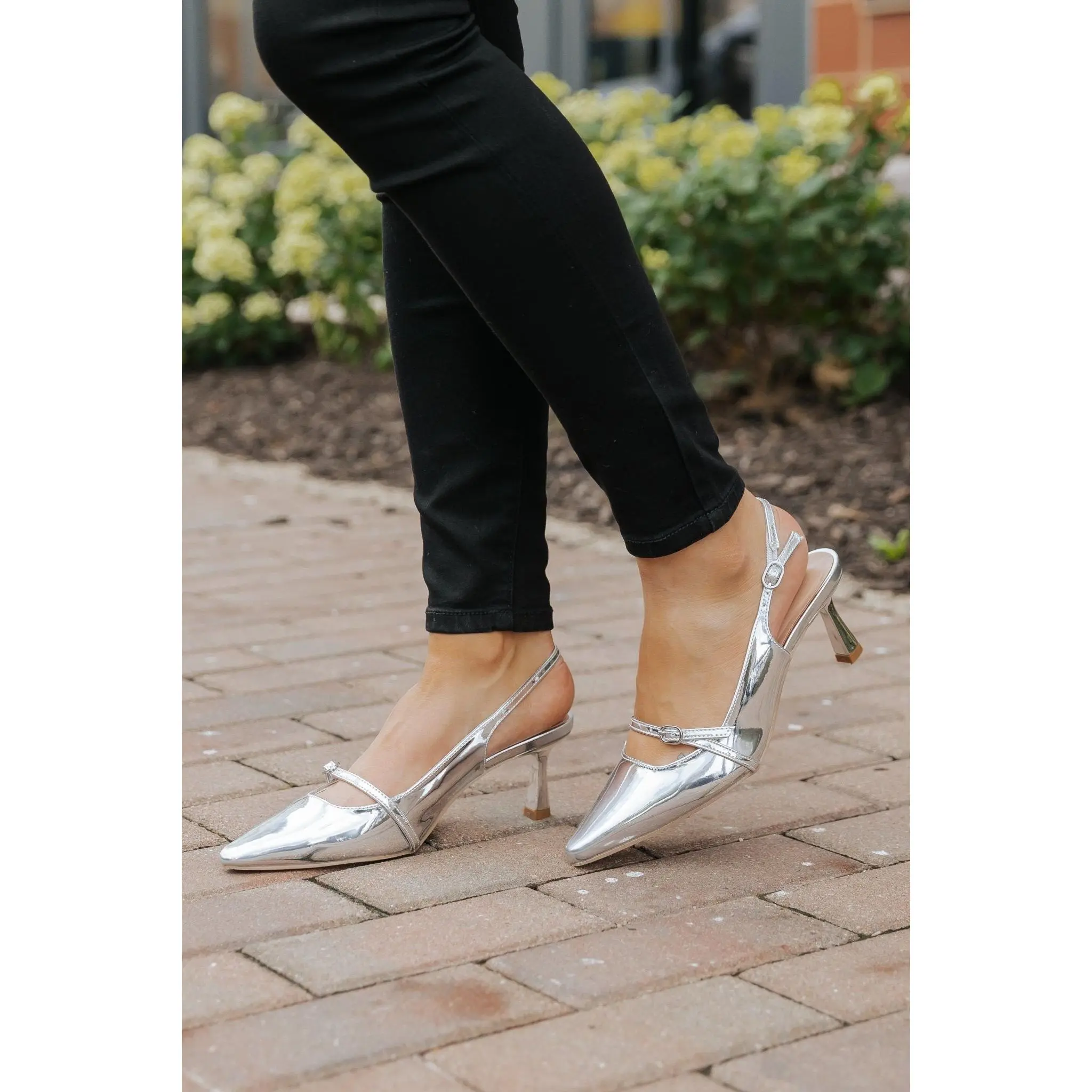 Step into effortless elegance with these Silver Slingback Heels, a sleek and versatile choice for any occasion!
