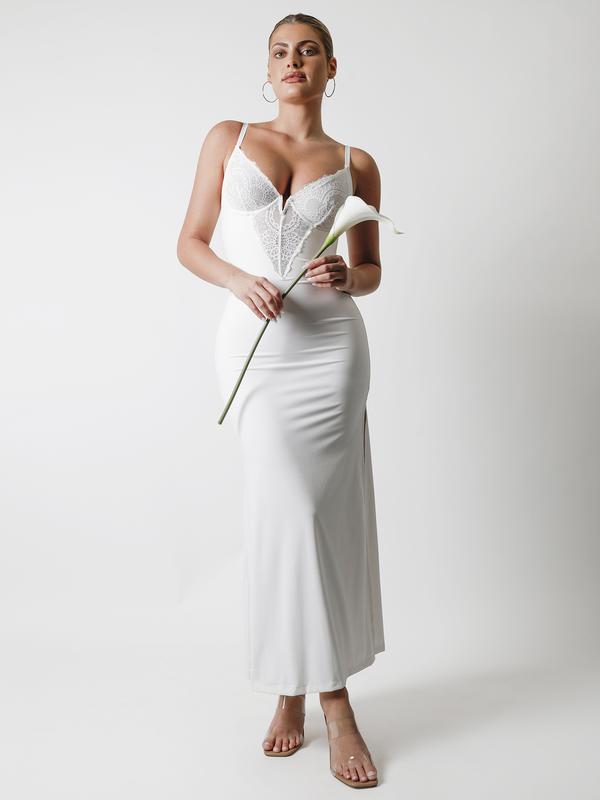 This dress is everything! The lace V-neck is stunning and the built-in shapewear is amazing. It's so comfortable and the quality is crème de la crème. Got tons of compliments! Definitely recommend.