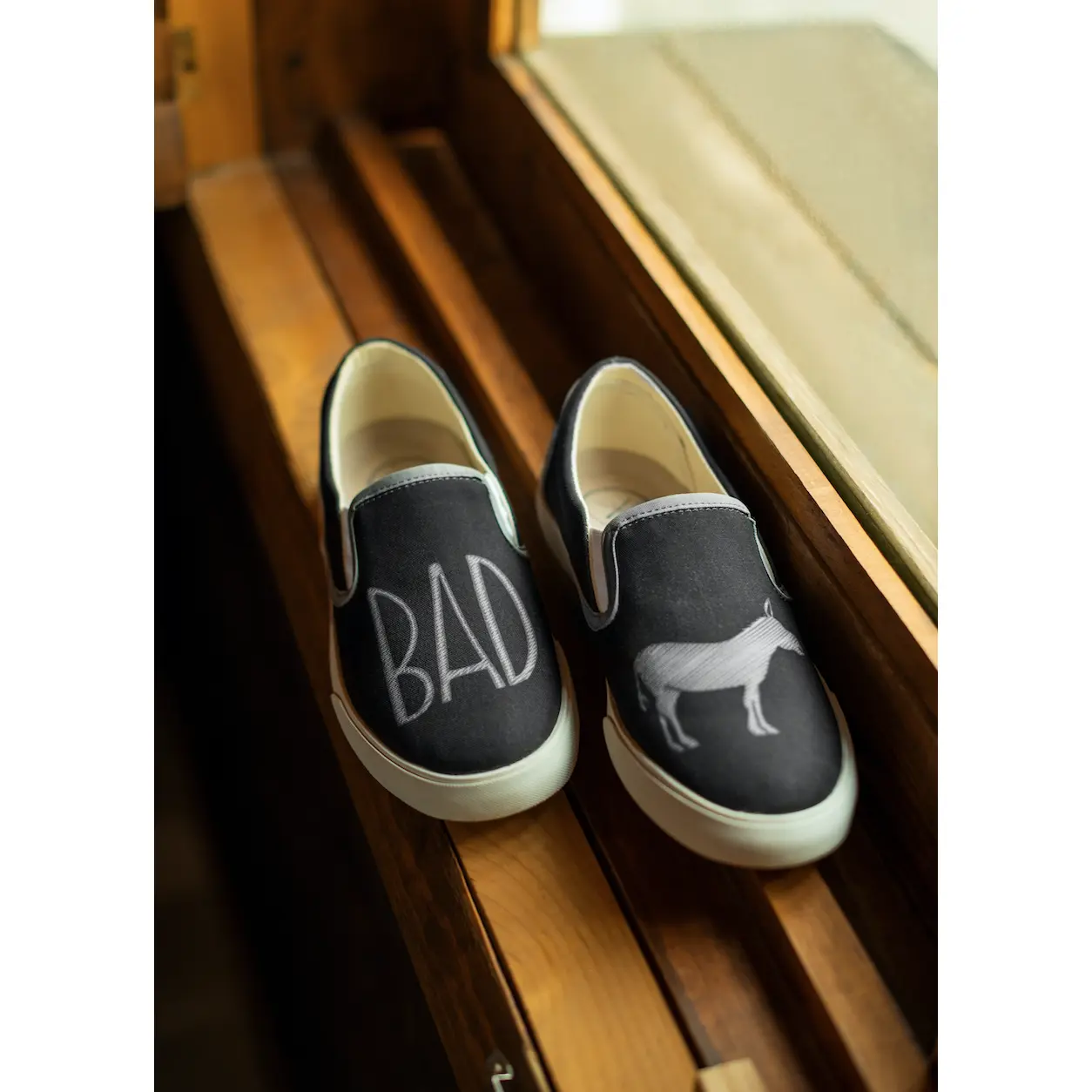 I was really excited about these shoes. The fit is fine, but the print for the donkey isn't. You can't see his ear (it's cut off on the white part), so it's not obvious what it is.