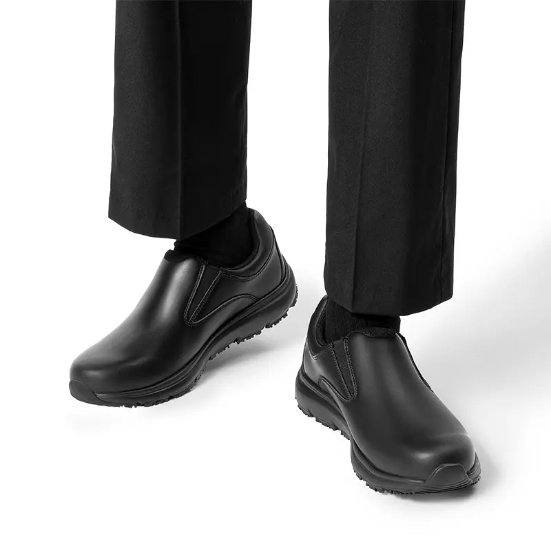 Crafted with multiple layers of protection, these men’s slip-on leather sneakers are designed to keep you safe and comfortable in work environments. The slip-resistant rubber outsole and water-resistant design make them ideal for environments such as kitchens. With a slip-on design, these men’s shoes offer convenience, allowing for easy on and off.