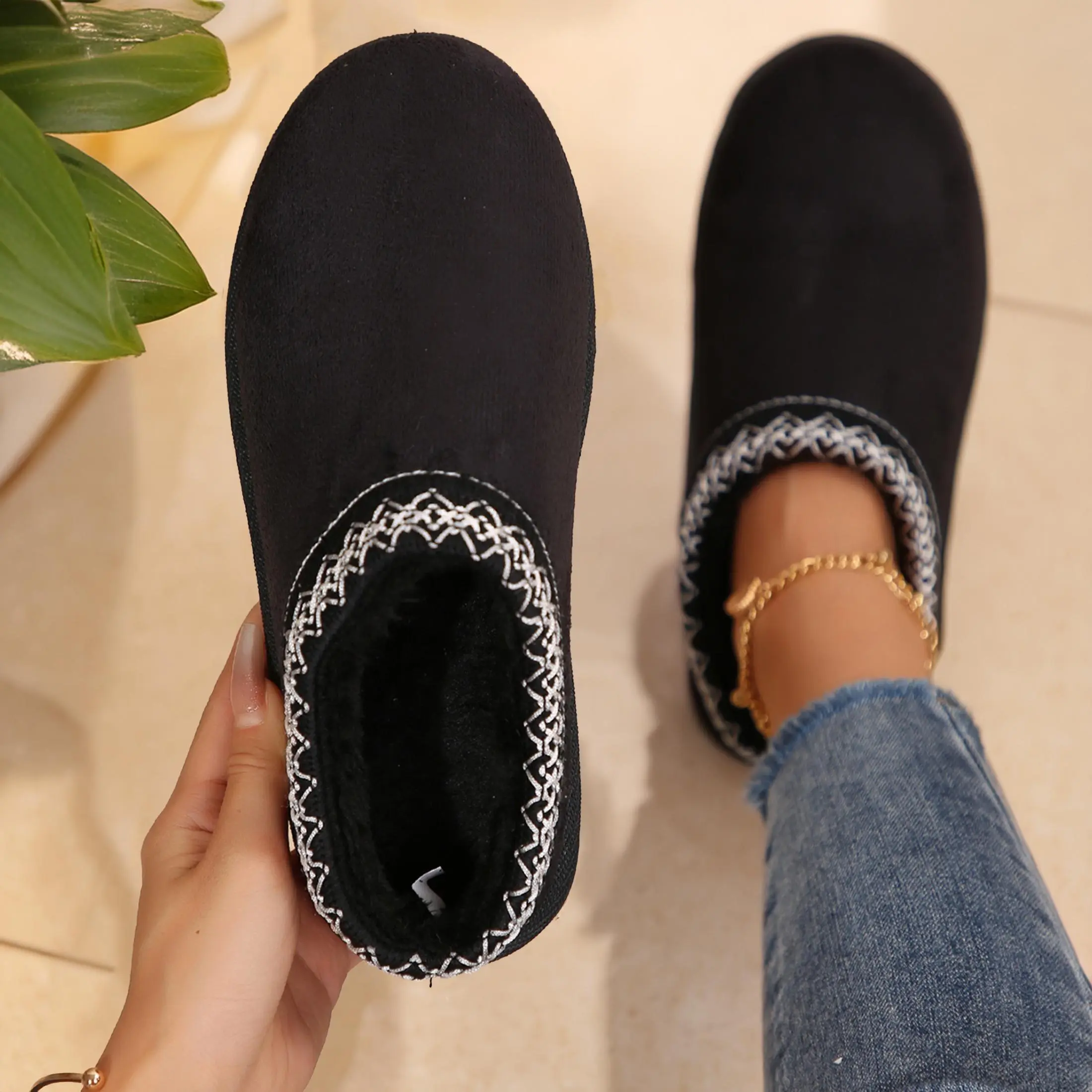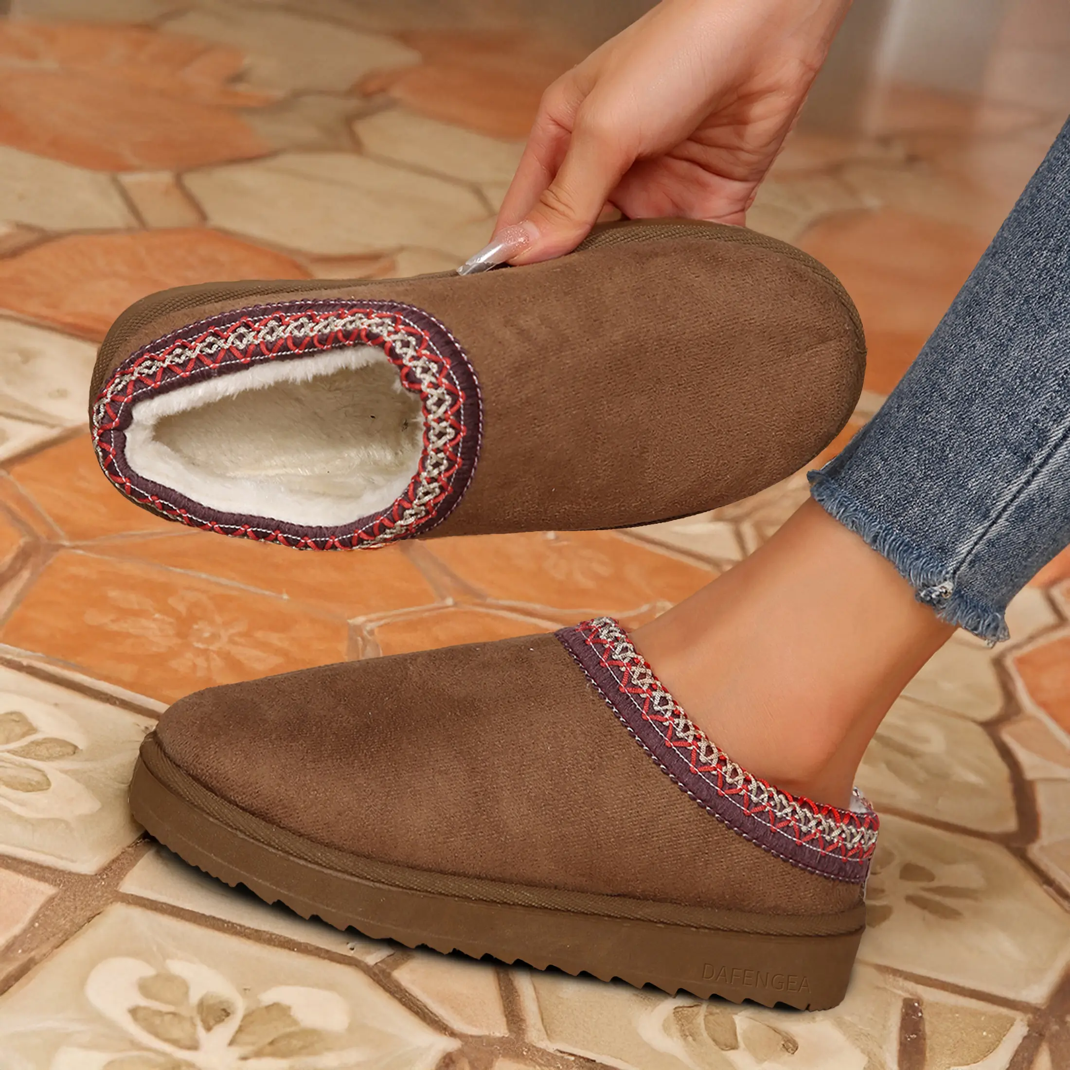 "【High-quality fabric】These Platform boots slippers for women are made with high-quality fabric that is perfect for both indoor and outdoor wear. The soft wool lining and suede exterior, protected by Rain and Stain Repellent, make these slippers durable and resistant to the elements. The lightweight rubber sole provides durability without adding bulk, ensuring a perfect fit that will last you a long time.
