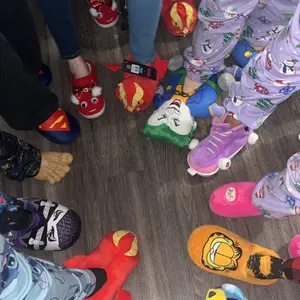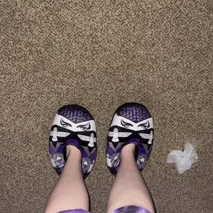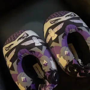 You're ready to face anything that the Goblin King throws at you when you wear these exclusive, officially licensed Labyrinth Dancing Jareth & Goblins Slippers for Adults! Made of soft, stuffed velour, the unisex slippers are printed with movie images, including Jareth's eyes, white owls, Ludo, and more. The outer soles are lined with anti-slip material.