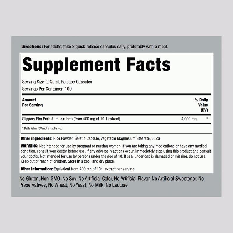 Piping Rock has crafted a premium Slippery Elm Bark (Ulmus rubra) supplement for advanced daily support. A single serving delivers an equivalent of 4,000 mg of this amazing extract in convenient form. It’s the perfect herbal supplement for adult Men & Women and any botanical regimen!