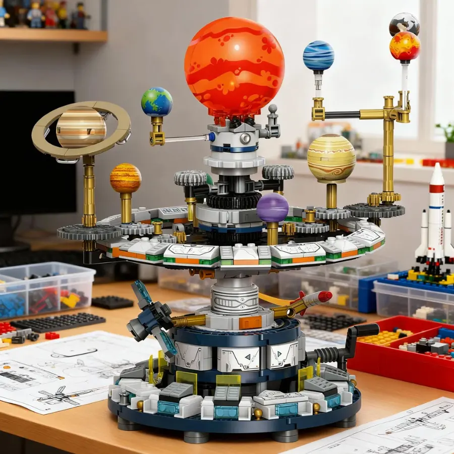 Small Building Blocks, Solar System Rotating Platform Model, Technic Gear Planet Rotation, Educational Toy, Birthday Gift, Christmas Present, Building Block Sets
