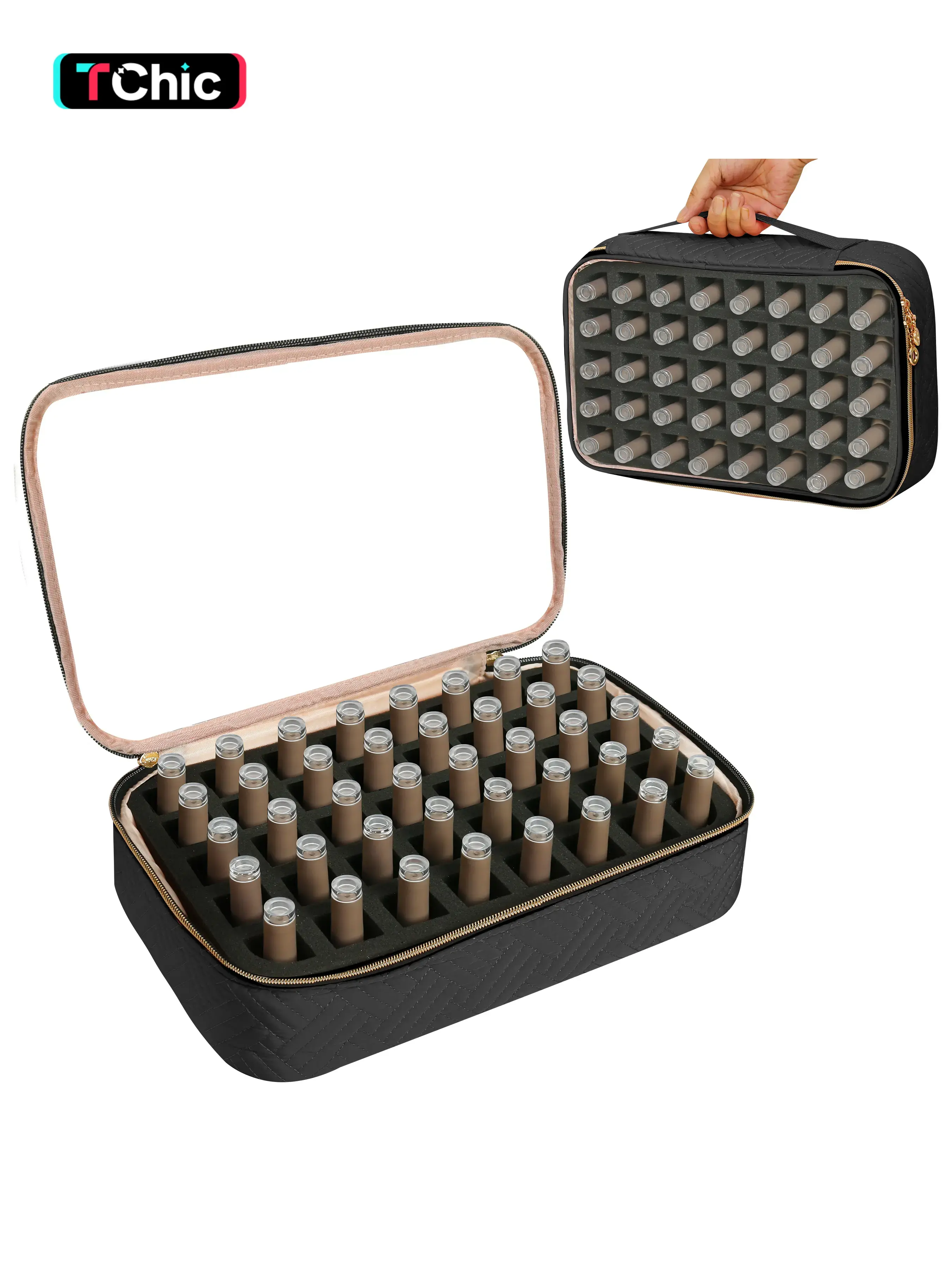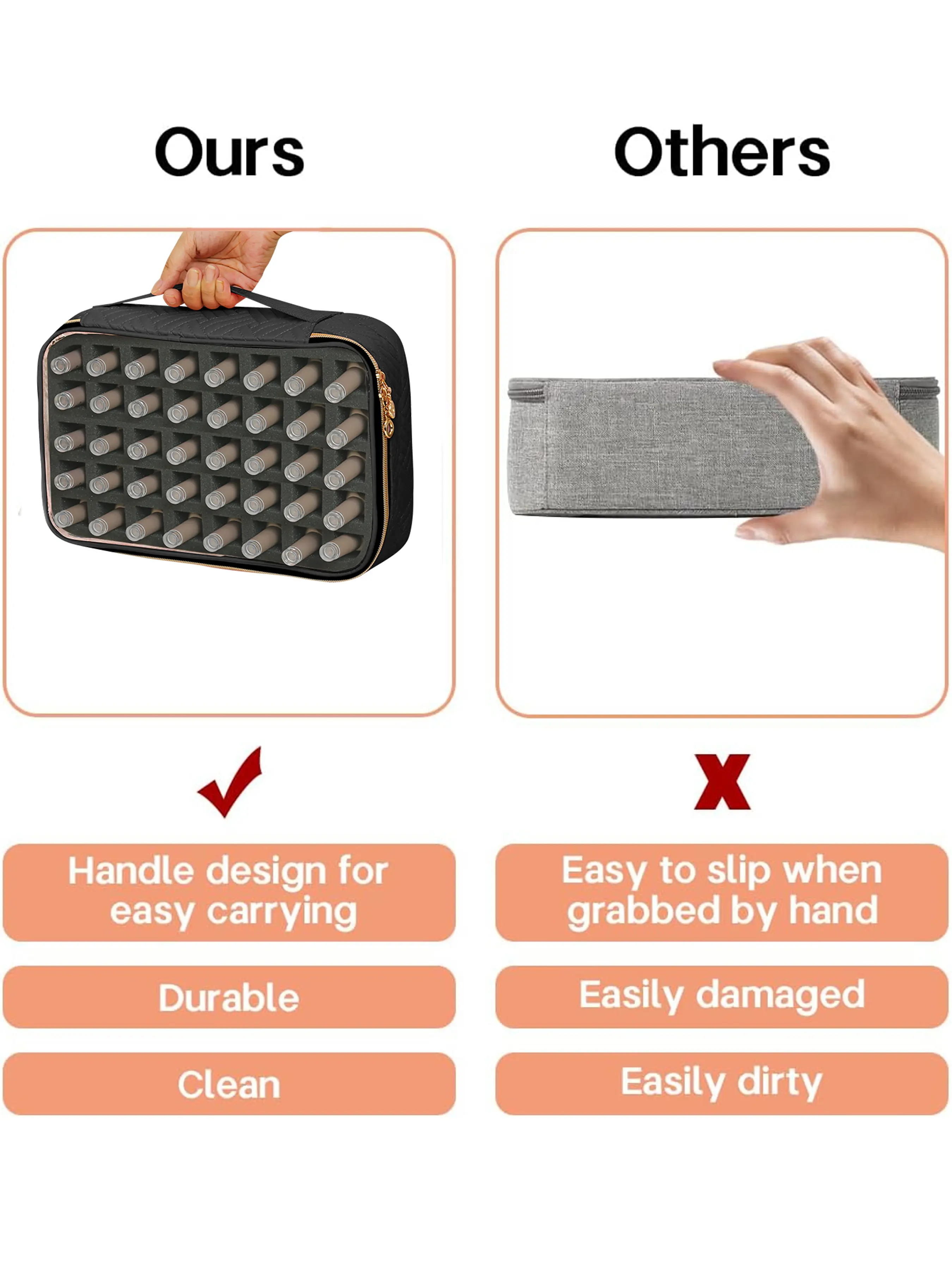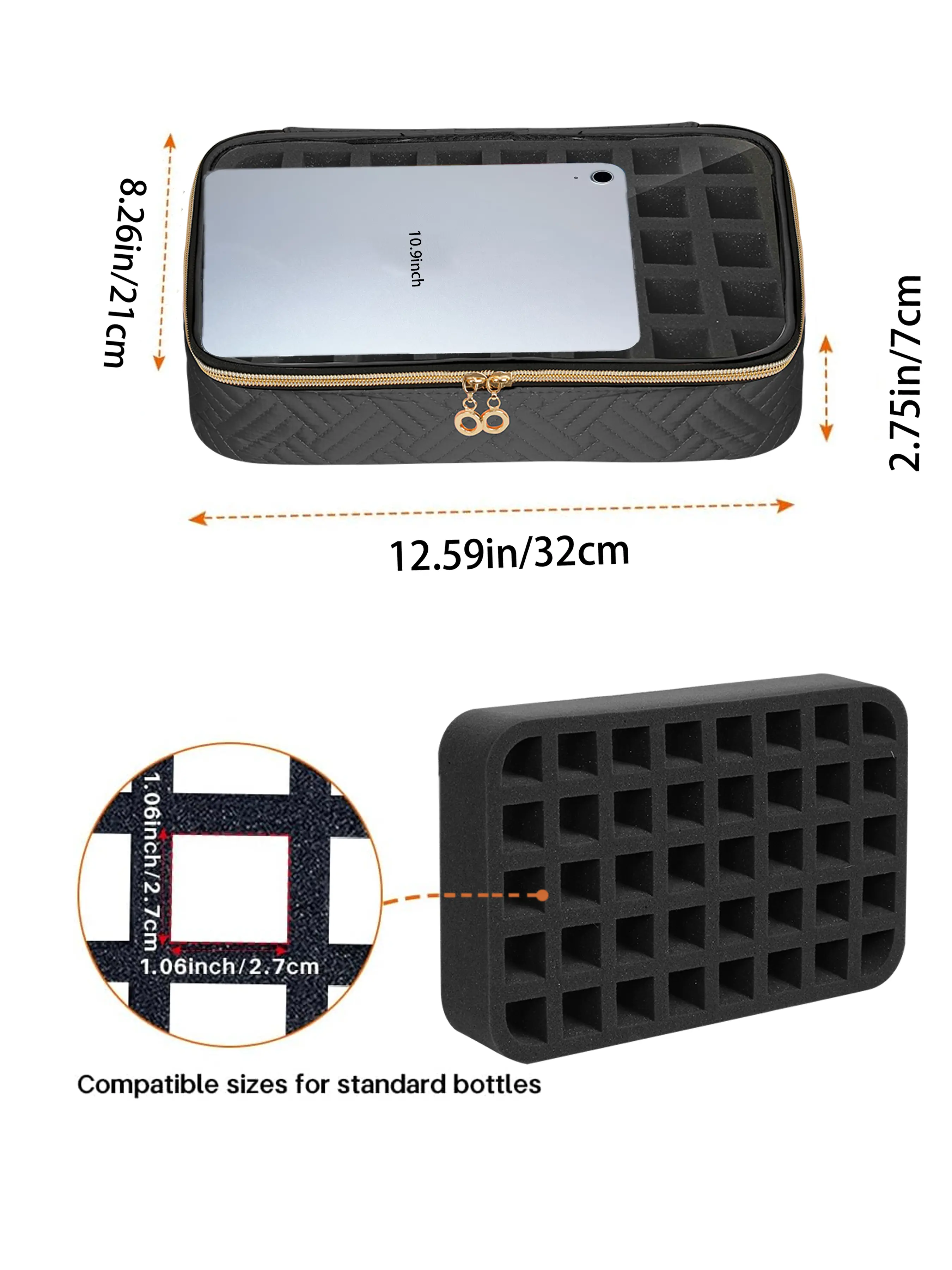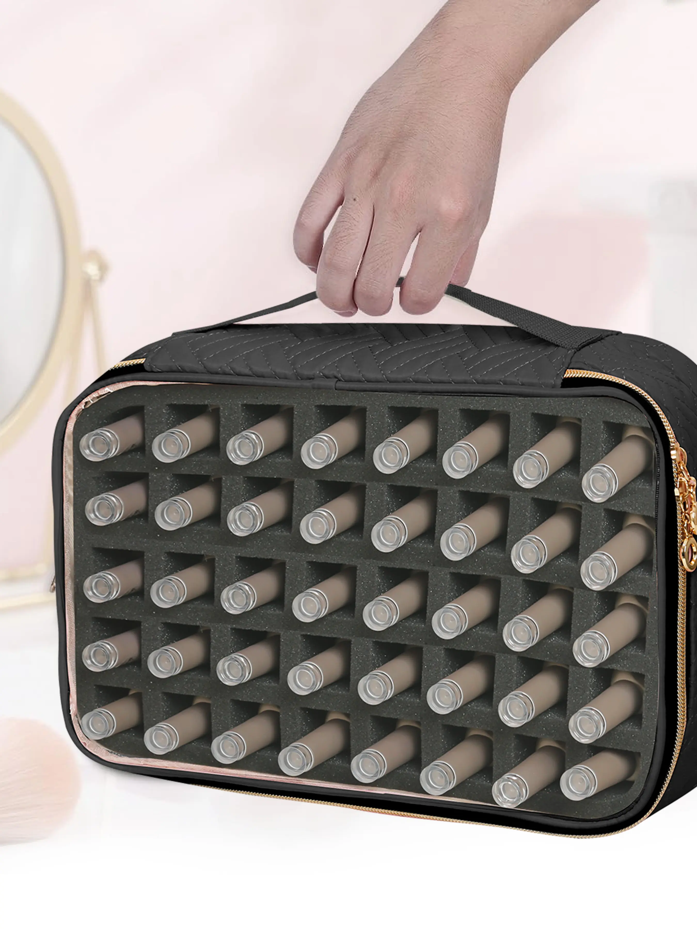 【Size and Specifications】Dimensions: Length:12.6inch/32cm, Width: 8.26nch/21cm, Height: 2.75inch/7cm . Nail polish organizer case can hold to 40 bottles (15ml/0.51 liquid ounce) of nail polish