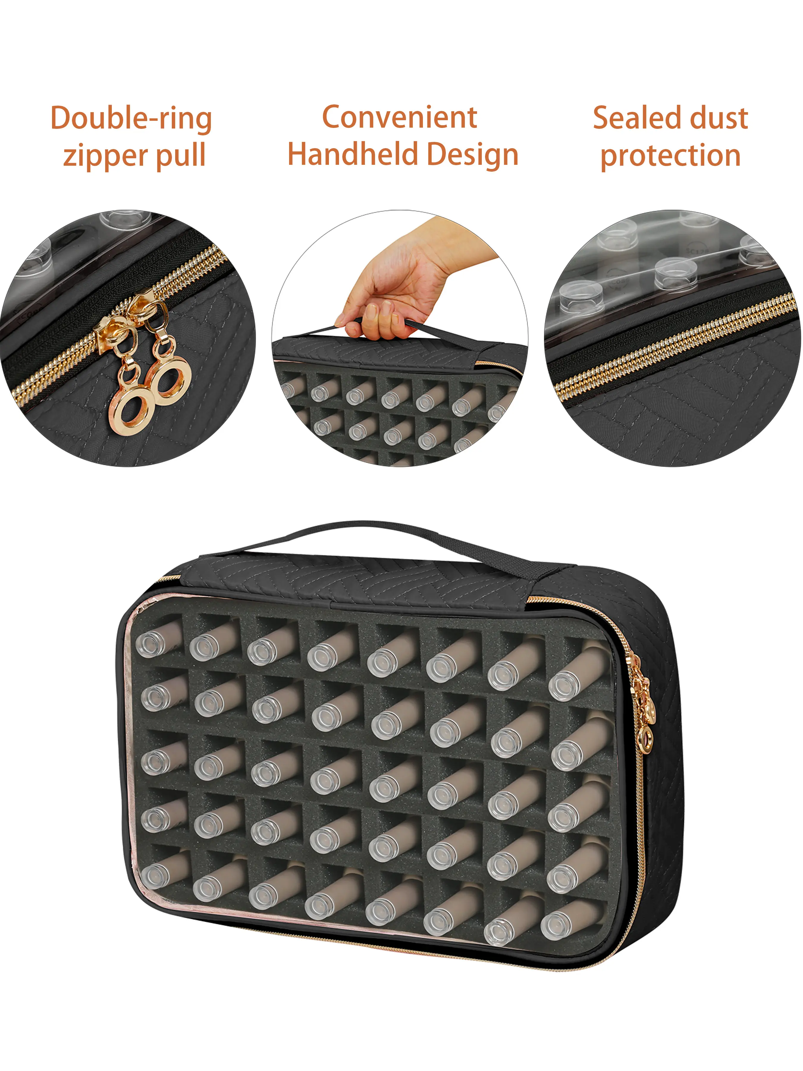 【High Quality Dust-Proof】: The nail polish storage bag is made of high-quality polyester fiber, which is wear-resistant and wrinkle resistant. And the interior is filled with soft sponge. The transparent cover makes it very suitable for quickly finding what you need