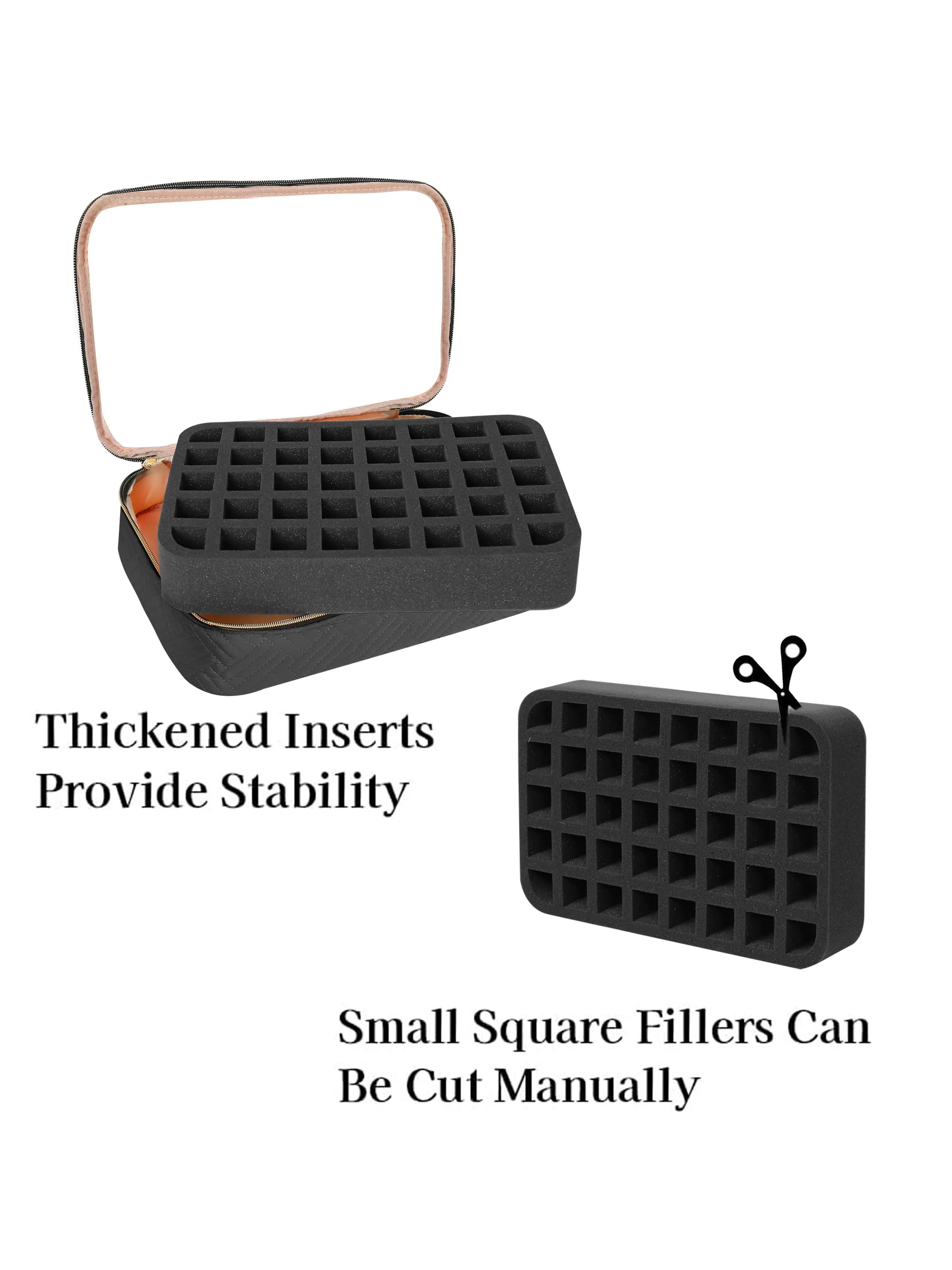 【Multi functional nail polish storage box】: this nail polish storage box can not only place nail polish, but also serve as a convenient makeup kit after taking out the detachable foam plug-in. Each spot for a bottle has a removable foam plug, and you can cut the partition between them to customize the appropriate size