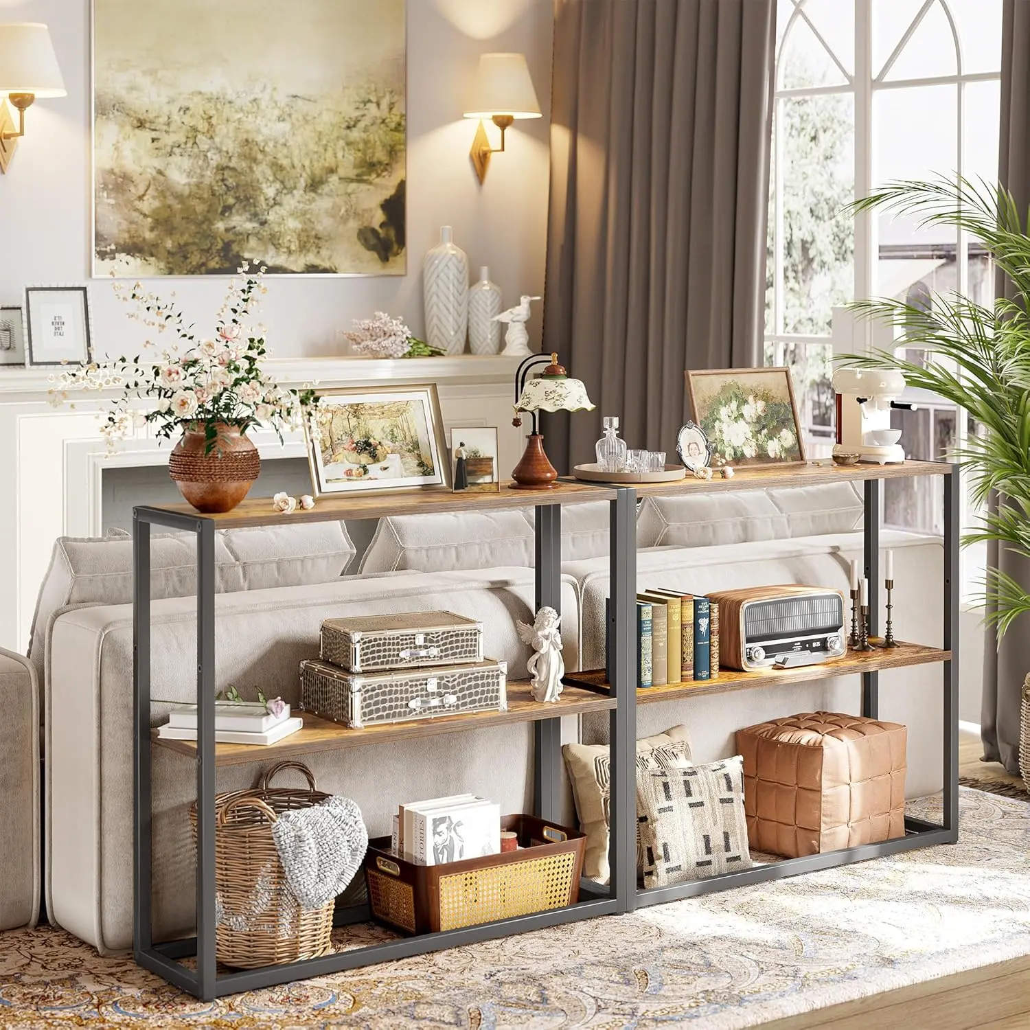 Convenient Open Shelves: Featured 3-tier shelves, this console table provide extra storage space for books, magazines, or small decorative items, keeping your space organized and clutter-free.