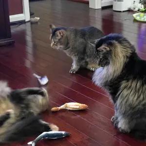 1.Interactive Fun for Cats: every time your feline touches this cat kicker toy, the automatic built-in motion sensor kicks into action and the cat teaser fish moves in a wiggling way, intriguing your cat to kick and play. This small animal toy is perfect Thanksgiving, Christmas and New Year gift for pet owners or your own pets.