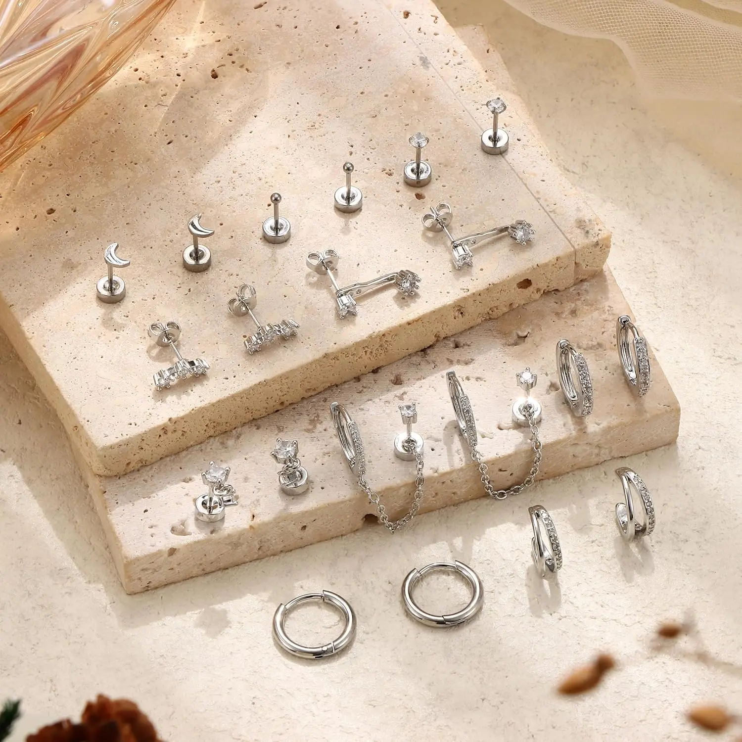 Each and every cartilage earrings for women is an extension of you. Our smaller, everyday flat back earrings and contemporary gold hoop earrings always feel like a second skin, serving as a base to tell your unique story. Whether you’re dressing up for a special occasion or adding a touch of elegance to your daily look, our surgical steel earrings blend seamlessly with your style.