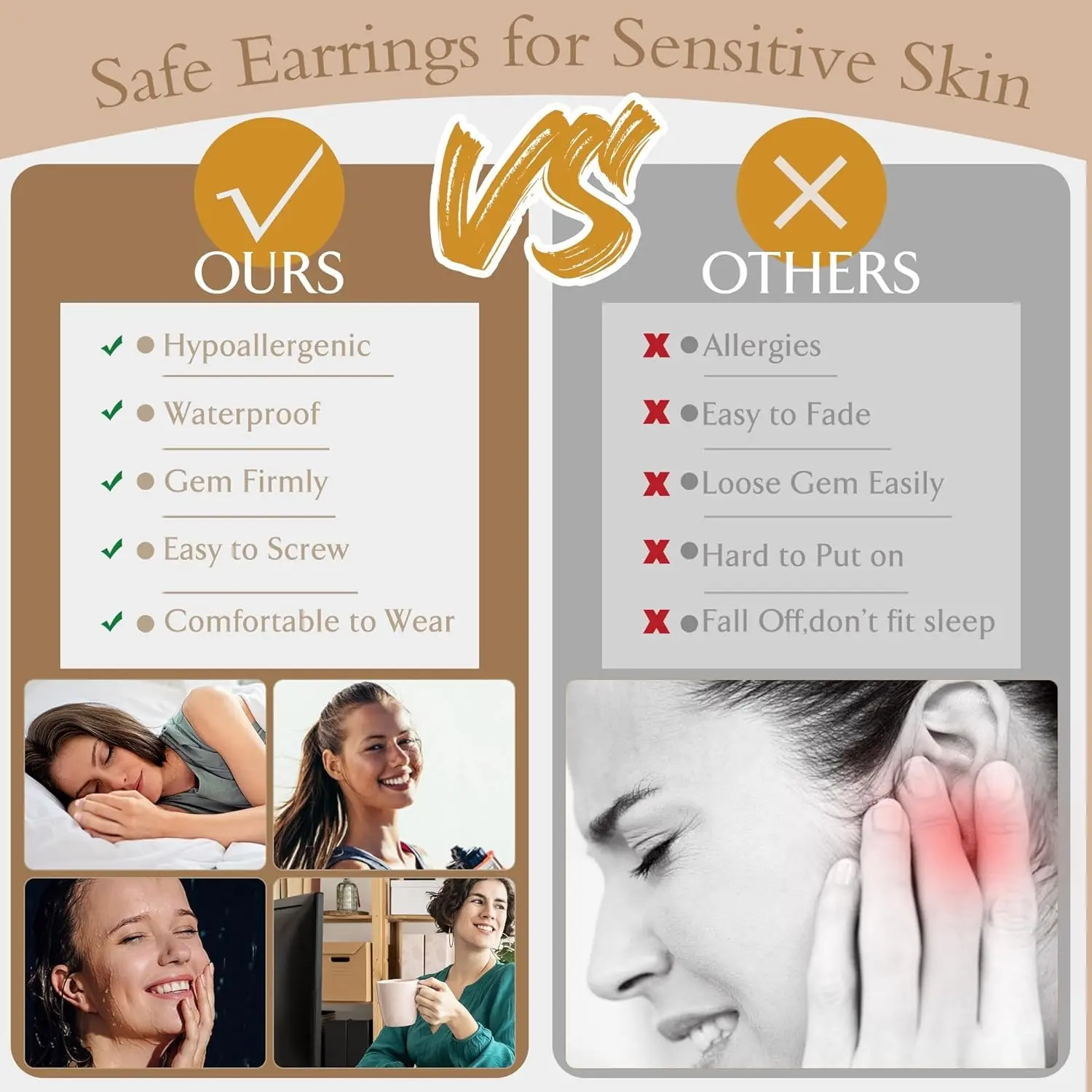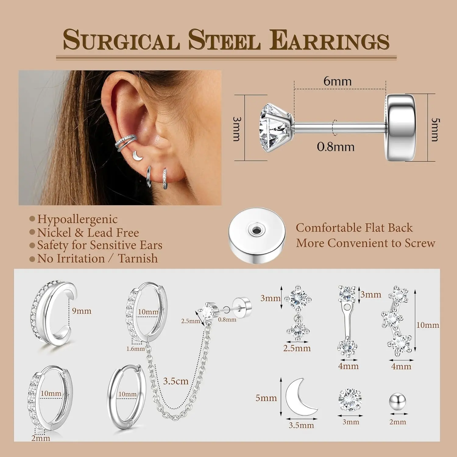 This Flat Back Earrings Set is nickel-free and anti-allergenic. Kind and non-invasive to the skin. Safety material, touch smooth, comfortable, lightweight, durable, non-toxic. Easy to put on and take off.