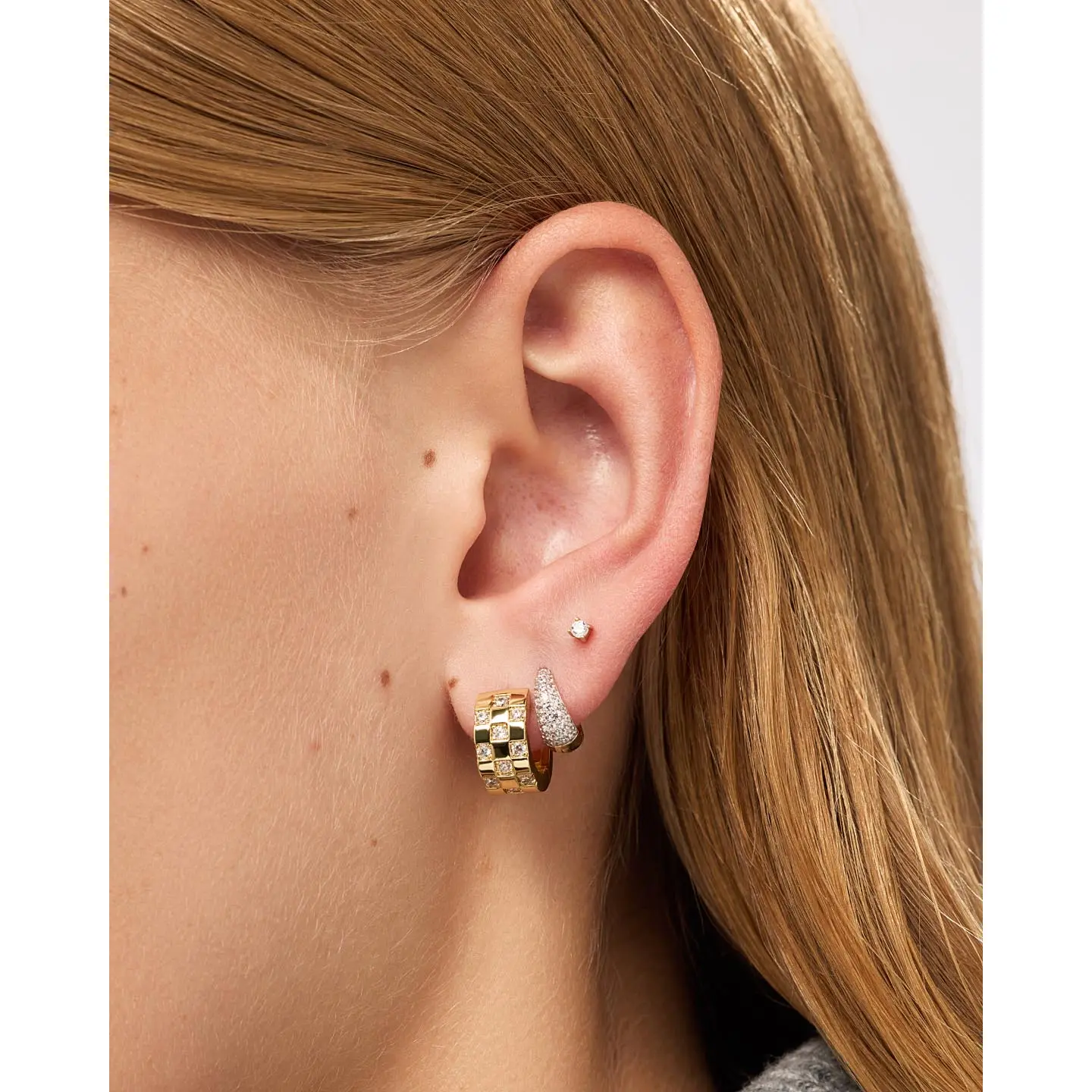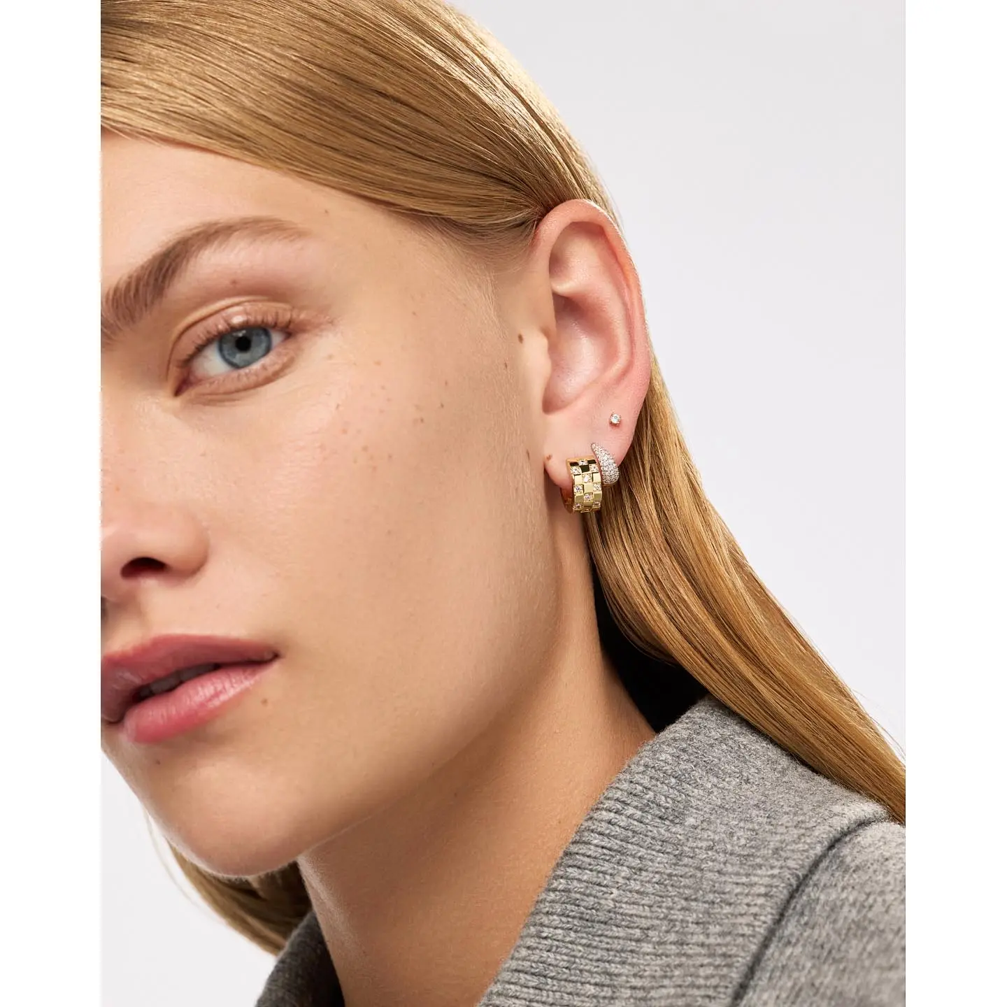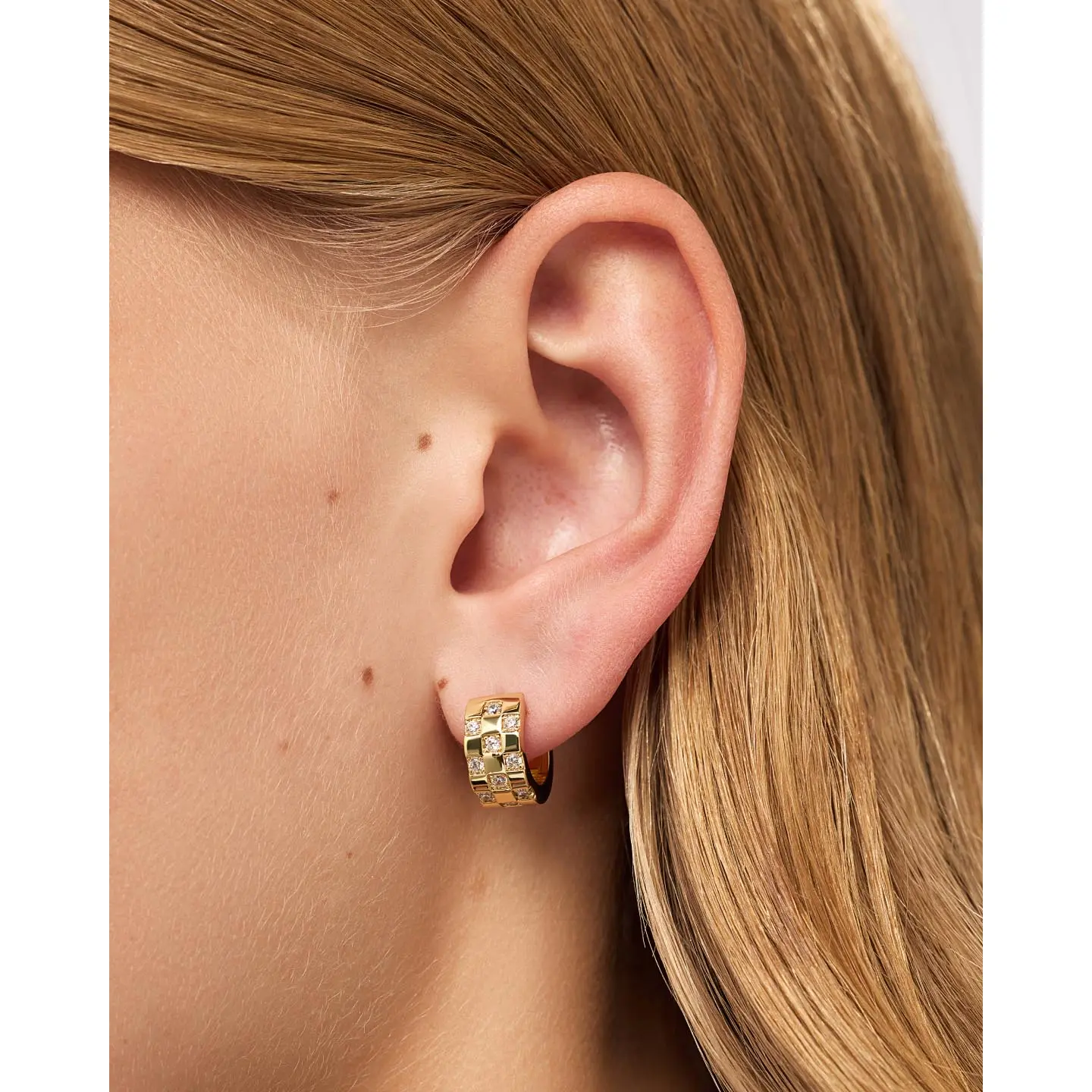 Obsessed is an understatement 😍 These checkered print huggy earrings go with literally everything. Easy way to look put together in seconds 💘👑  #earringsoftheday #checkeredstyle #jewelry #accessories #fashiontok