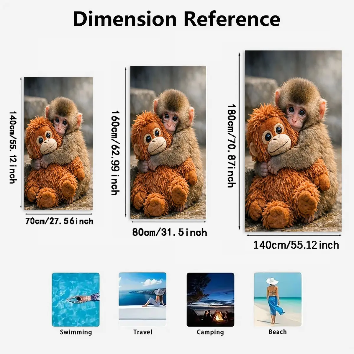Small Monkey Beach Towel, Summer Home Decor, Perfect for Travel, Yoga, Camping, Swimming, Vacation Essential Gift, Pool Towel Camp