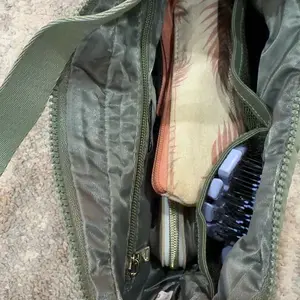 I LOVE THIS BAG!!! I swear it every single day, fits my hair brush, my makeup bag, and purfume + deodorant. I could fit more if i needed. I love this bag.