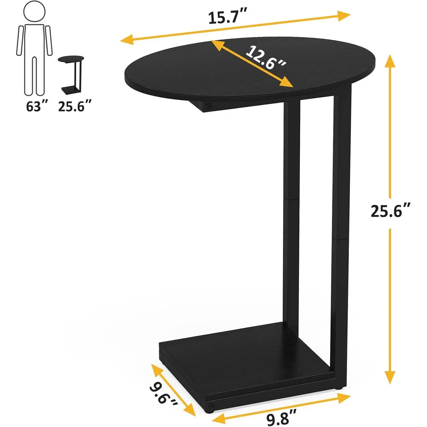 SPACE-SAVING: This small table sized 15.7"(L) x 12.6"(W) x 25.6"(H), easily fits the gaps between your couches or the tight spots beside your bed