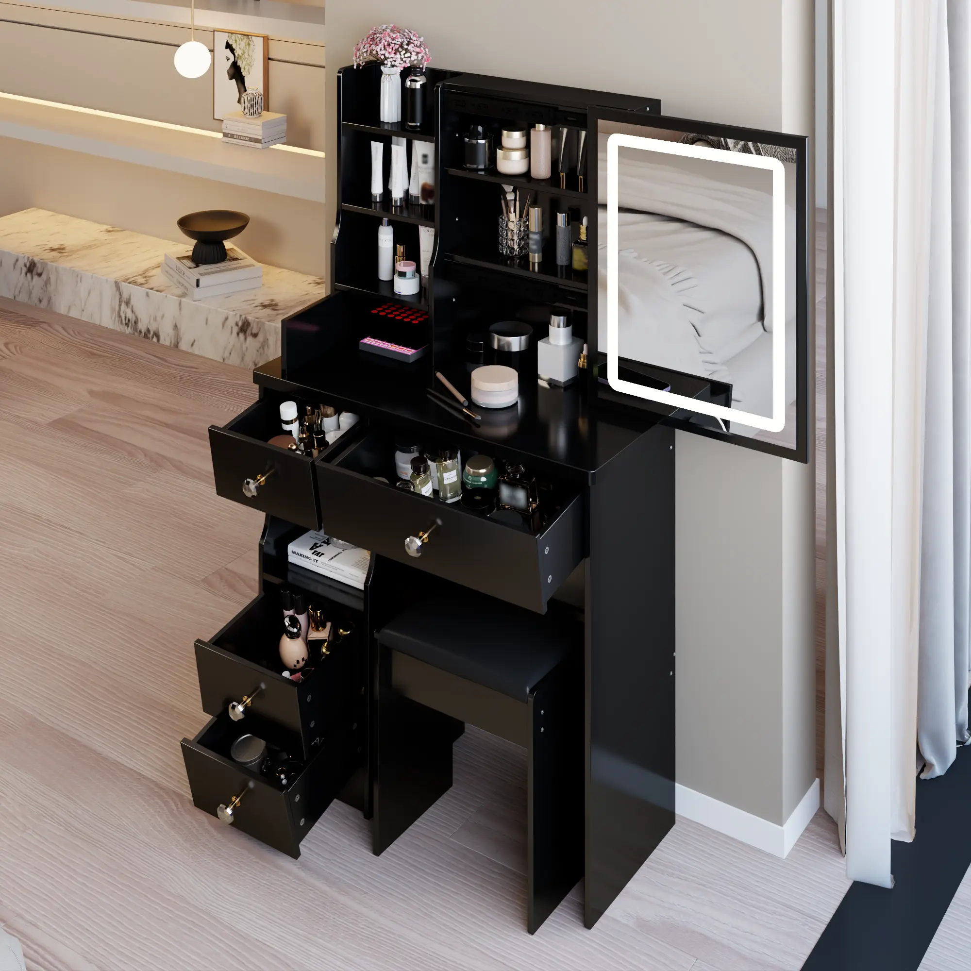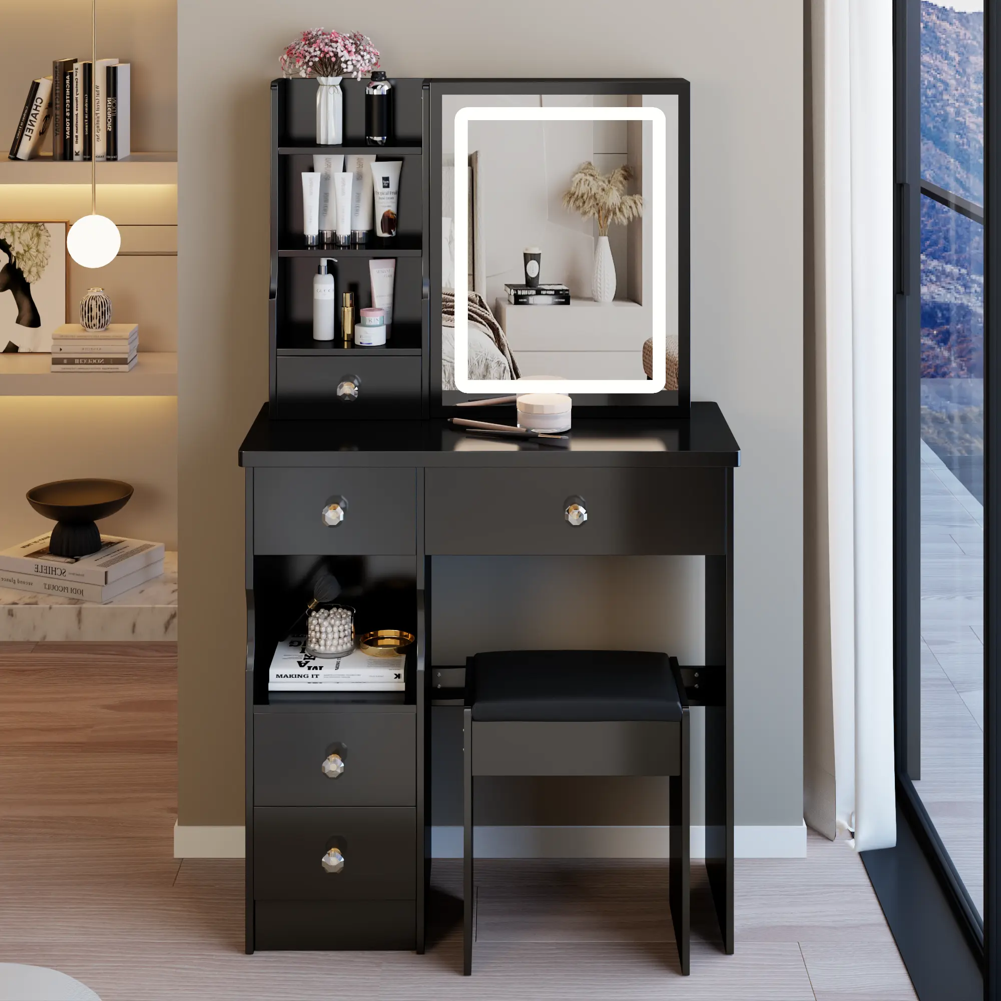 [Includes a padded dressing table stool]: The packaging includes a dressing table and a padded stool. You will no longer need to make additional purchases. This will greatly save you time and delivery cost.
