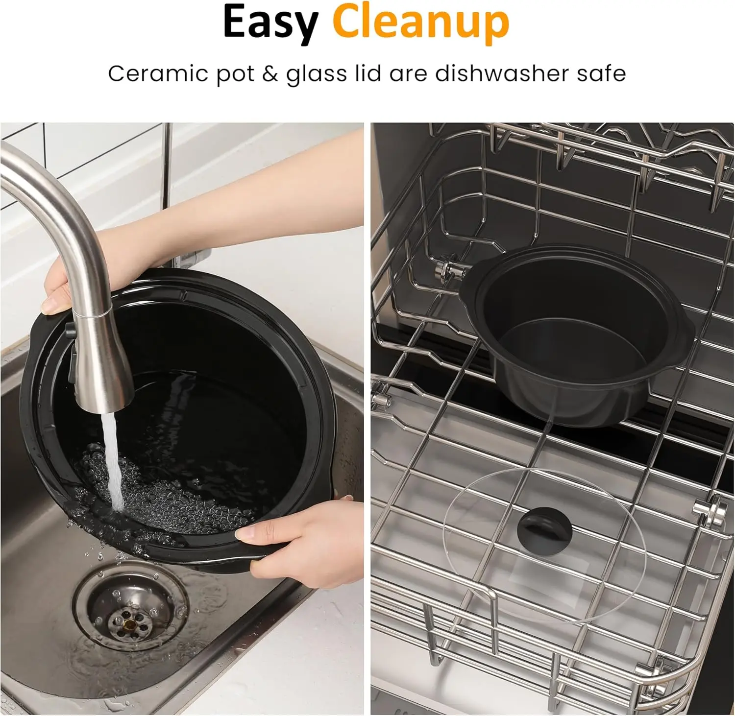 Effortless Cleanup: Featuring a dishwasher-safe detachable ceramic pot and glass lid, cleaning up is a breeze, leaving you with more time to enjoy your culinary creations. Moreover, the stainless steel casing can be wiped clean with a damp cloth, ensuring it stays pristine and ready for your next delicious meal.