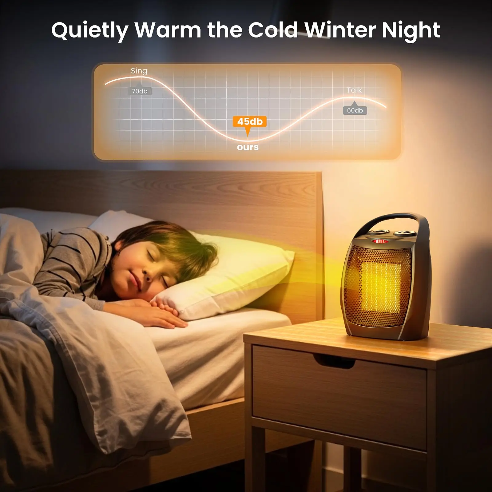 ● CERAMIC SPACE HEARER : Advanced ceramic heating elements provide faster and more efficient heating than traditional heaters.Ceramic space heaters can quick heating within 2S ,produce abundant heat without open coils, and are long lasting.Small and powerful this is the portable space heater for bedroom, office and under desk use.