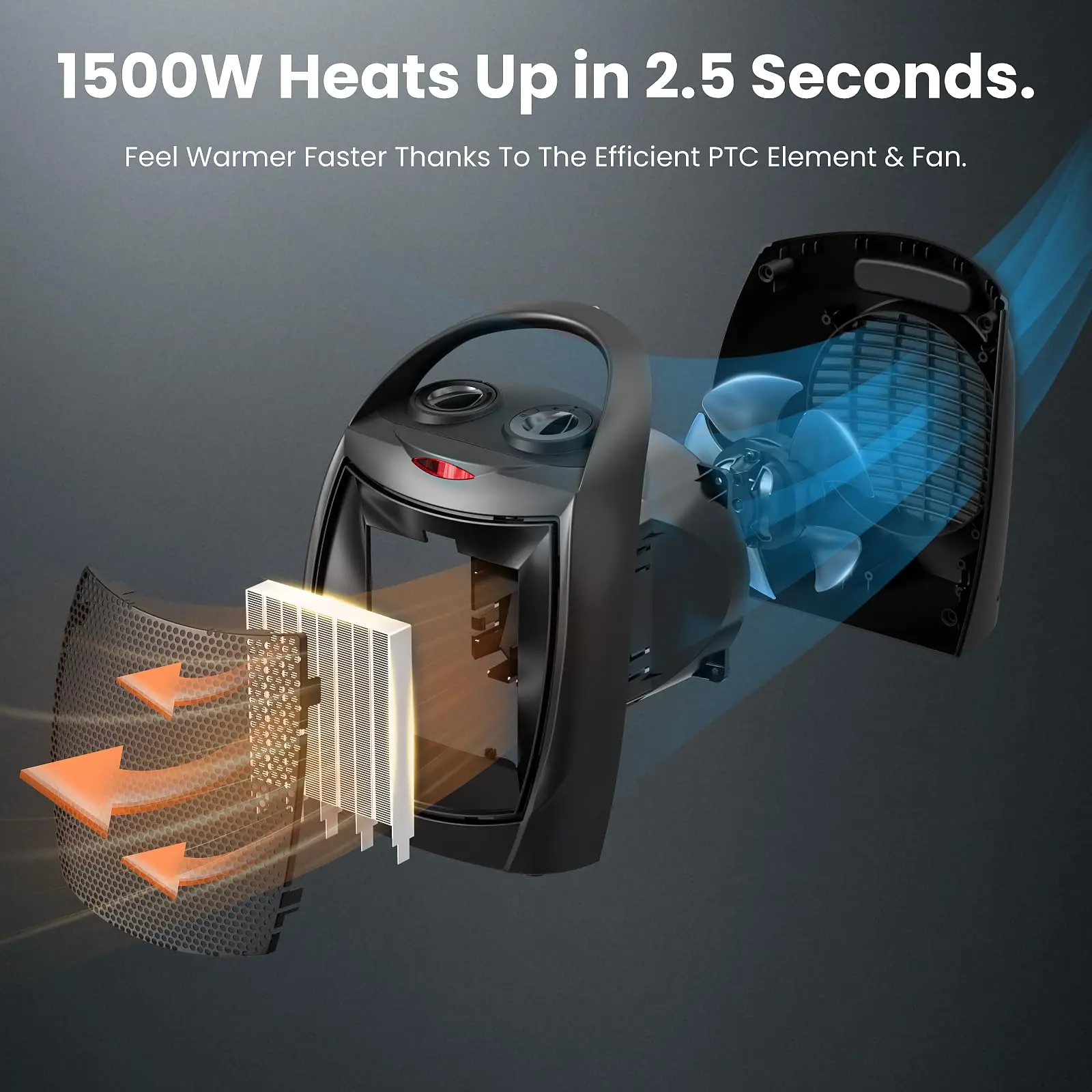 ● ADJUSTABLE THERMOSTAT: The small portable heater can according to the thermostat setting let your room remain at a comfortable temperature with combined with an adjustable thermostat control, Also allows you to adjust the heater's 1500 watt ceramic heating element.
