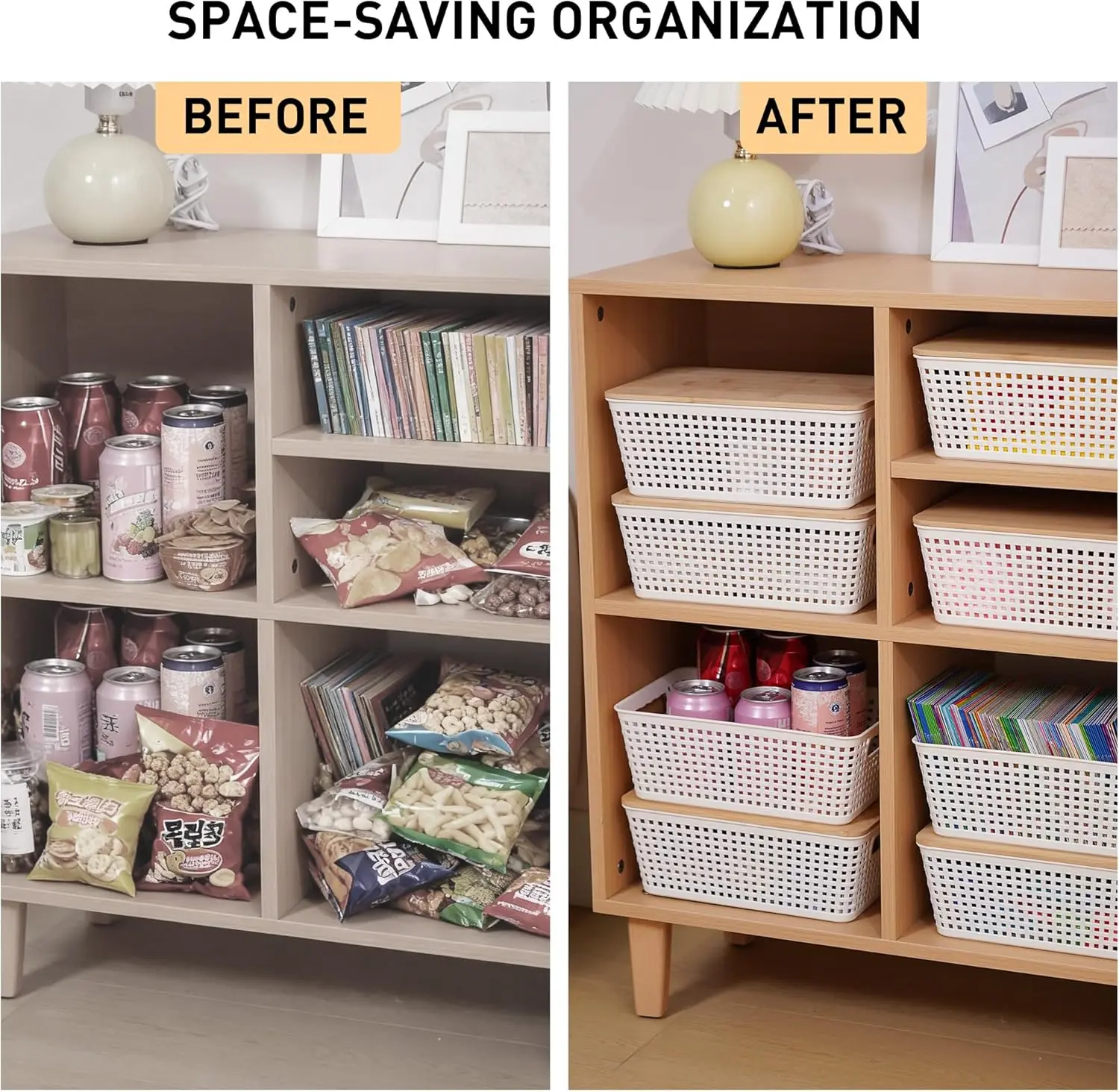 These bins are perfect for multi-purpose use—store snacks in the kitchen, organize stationery on your desk, tidy up toys in the playroom, or arrange essentials in closets and shelves. Their minimalist white design blends seamlessly with any interior style, making them both practical and visually appealing.