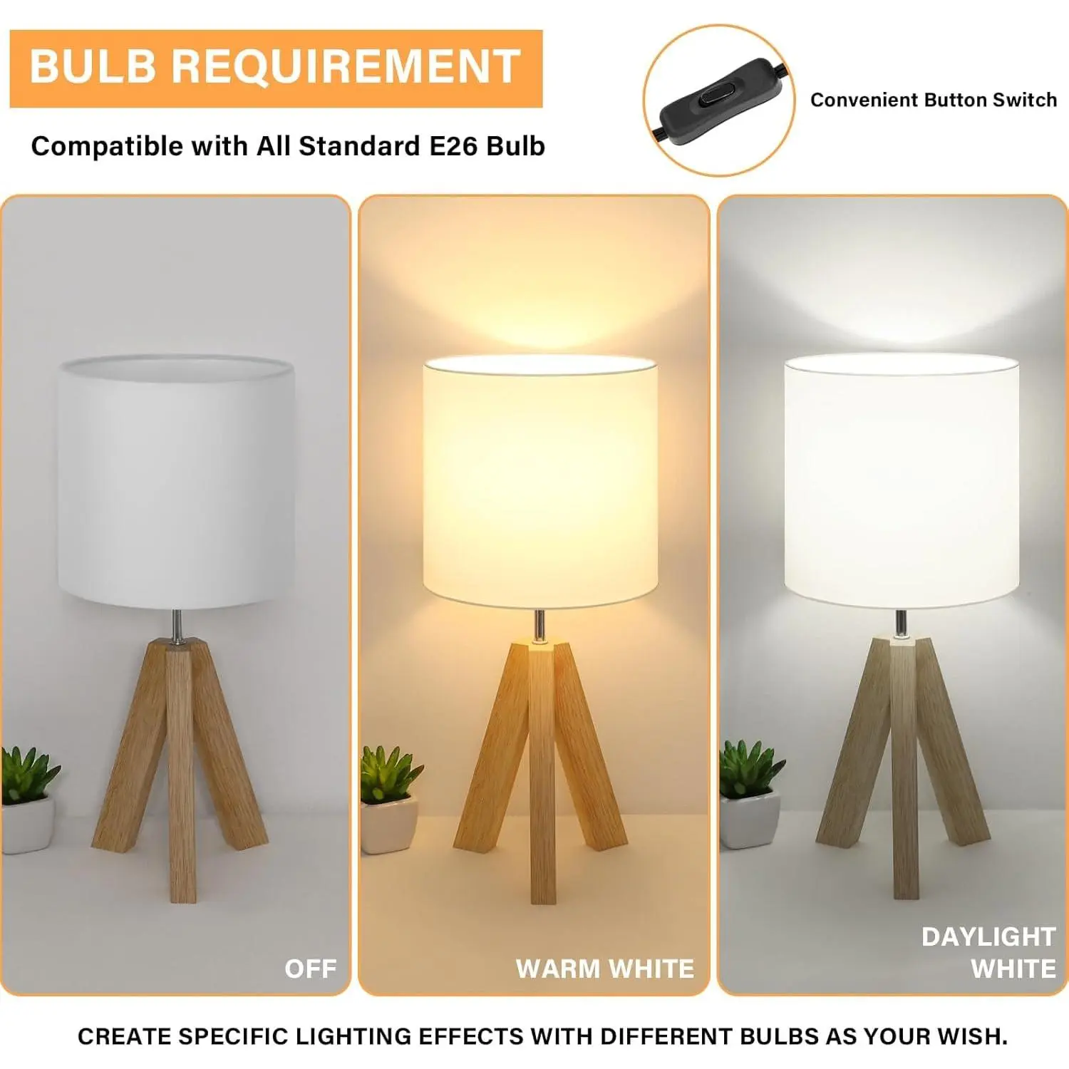 The E26 socket is compatible with incandescent/LED/CFL bulbs (Not included). You can choose different color temperature/brightness bulbs as needs.