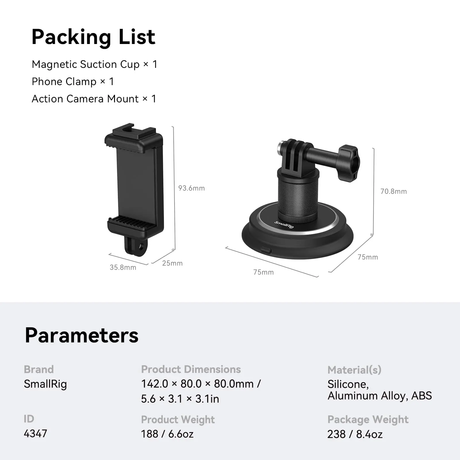 It can also be used with a mobile phone clamp to attach mobile phones with a width of 56-86mm / 2.2-3.4in and a thickness of less than 9mm / 0.4in. SMALLRIG offers a wide range of accessories to choose from, including the 3084C / 3083C Cage for GoPro, 4088B cage for Insta360 X3, and 4119B Cage for DJI Action 4, as well as phone cages. There's always one that suits your needs.