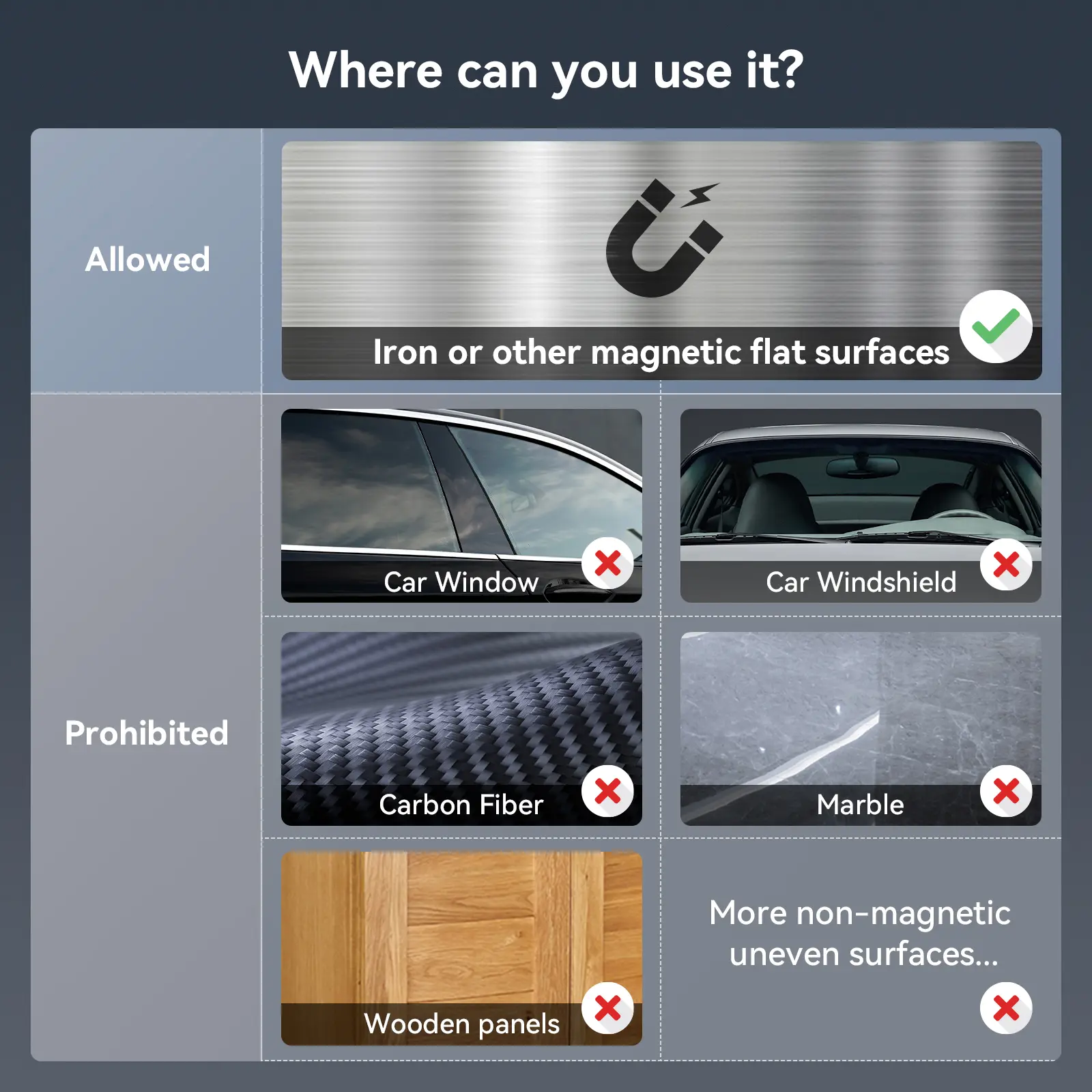 Stronger Than Ever: Utilizing a revolutionary 2-in-1 design with magnets and suction cups, it has been tested to withstand a vertical tension of up to 28kg. Compared to similar products, it boasts a sixfold enhancement, your better choice!