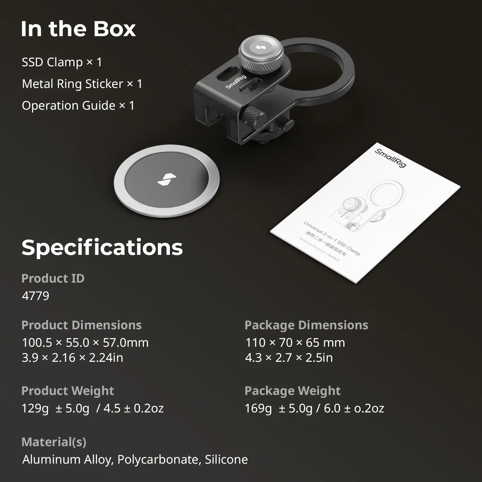 ·【USB-C Cable Clamp Included】The bottom of the SSD mount is equipped with a cable clamp to fix the USB-C cable, which is fixed by a knob screw to protect the transmission stability. This SSD bracket is compact and flexible, suitable for photographers and video shooters.