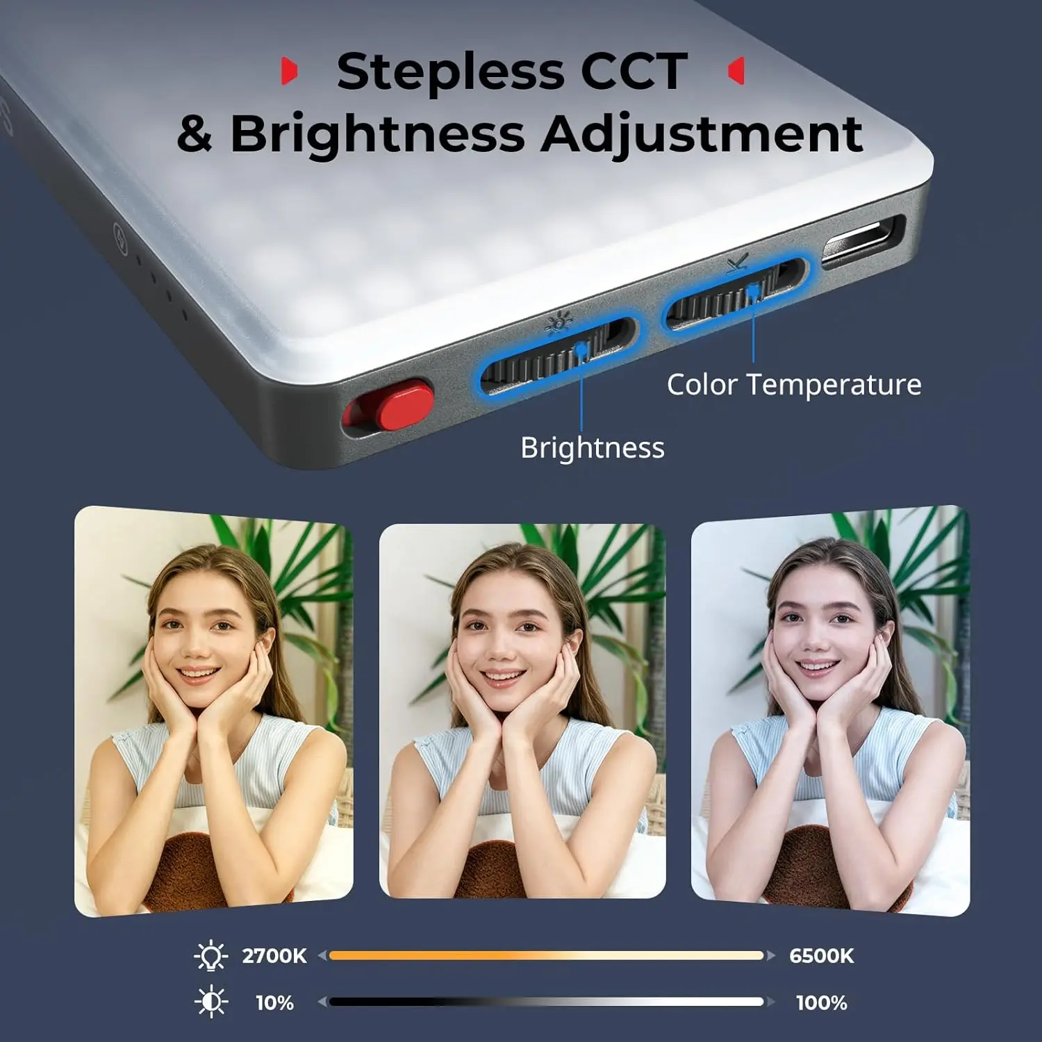 ·120 LEDs Best Lighting Effect: This portable phone selfie light features 120 high CRI LED beads, color temperature 2700K-6500K, supporting stepless CCT and brightness adjustment. Free switch between warm and cool light to bright skin tone reproduction or ambient creation.