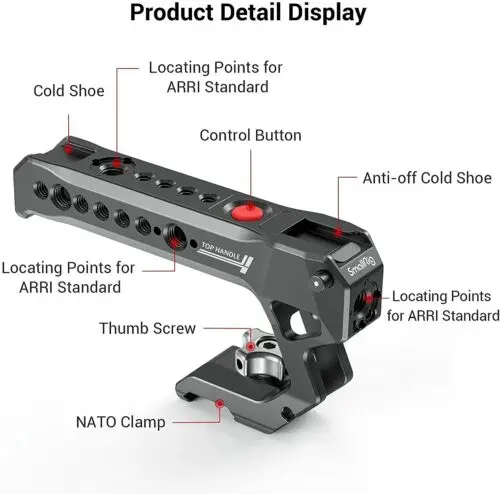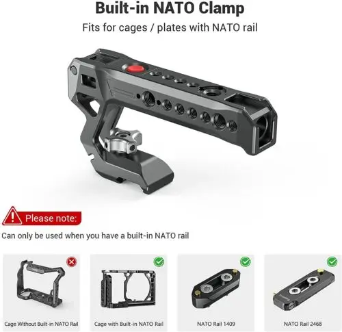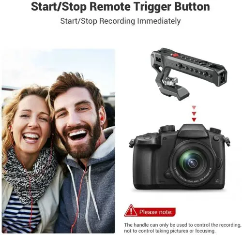 Only to Start / Stop Recording: NATO top handle 3322 is designed to provide convenient record start/stop control for a stable and comfortable shooting experience. With an ergonomic design, the handle features a silicone gel record button on top where the thumb restsCompatibility: The handle is compatible with multiple selected cameras, such as for Sony A7 / A7R / A7R V / A7S / A7II / A7RII / A7SII / A7SIII / FX3 / FX30 / A7III / A7RIII / A7 IV / A7R IV / A9 / A9 II / A5100 / A6000 / A6100 / A6300 / A6400 / A6500 / A6600 / RX100 III / RX100IV / RX100V / RX100 VI / RX100 VII, for FUJIFILM X-T3 / X-T4 / X-T20 / X-T30, for Panasonic S5 / S1 / S1R / S1H / BS1H / GH4 / GH5 / GH5S / GH6 / G9 / G95, and for Z CAM E2 / M4 / S6 / BGH1Multiple Mounting Points: The handle comes with multiple 1/4"-20, 3/8"-16 threaded holes, 3/8"-16 locating holes for ARRI standard, and cold shoes for mounting accessories. For example, the front cold shoe mount can work with Monitor Mount 2346. The front end comes with an 3/8"-16 locating hole for ARRI standard for Monitor Mount 2348Quick Switch: The handle can quickly secure to a cage with integrated NATO rail or work with NATO Rail BUN2468 to increase compatibilityNOTE: 1. The handle can only be used to control the recording, not to control taking pictures or focusing.