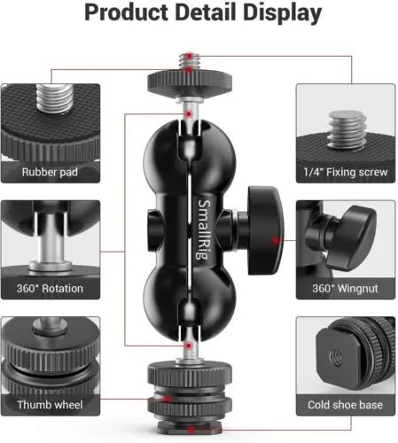 5. SmallRig Cool Ballhead, Multi-Function Double Ball Dead Adapter with Shoe Mount & 1/4" Screw for Monitors Led Light Microphone - 1135