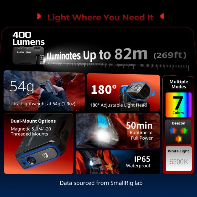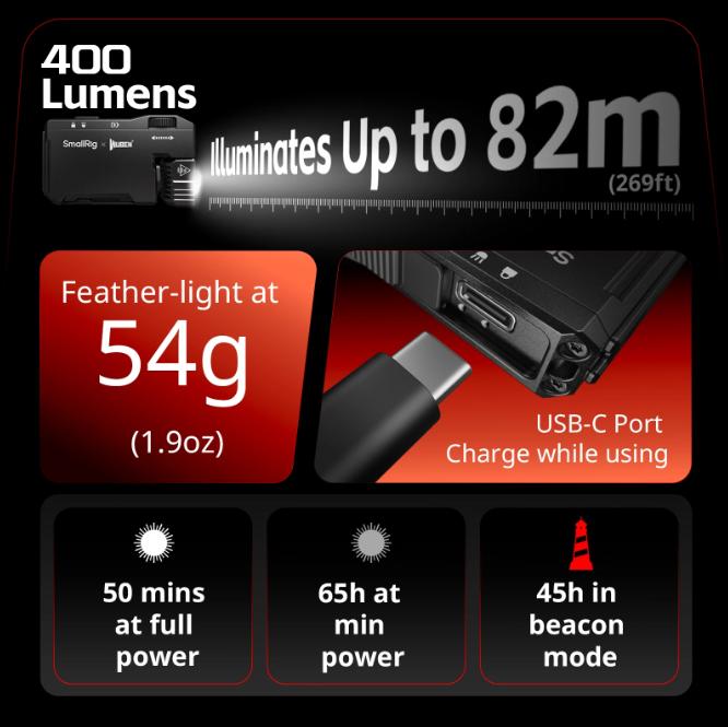 SmallRig Survival mini EDC Flashlight: 400 Lumens & 82m Throw, 65Hrs, IP65, RGB Alarm & Hands-Free Light  5710