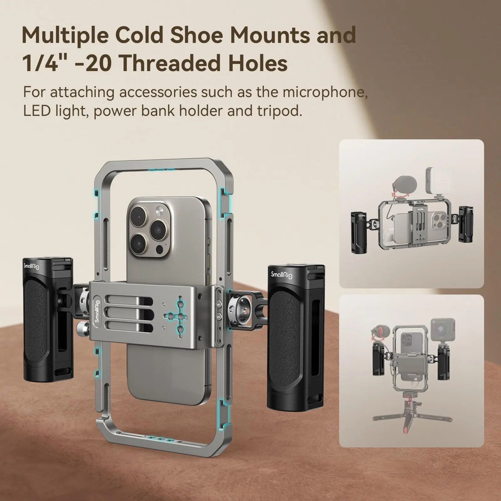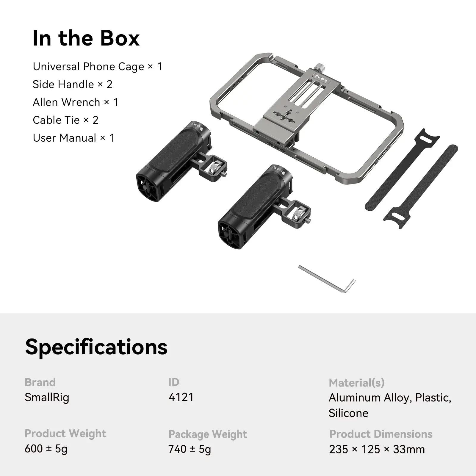 Ever struggled to keep your smartphone steady while filming your latest vlog or creative video? Meet the SmallRig Universal Phone Cage—a perfect companion for iPhone, Samsung, Pixel, Huawei, and many other phones. Crafted from high-quality aluminum alloy, this cage offers rugged durability wrapped in a sleek design. Its dual handles, covered with anti-slip silicone, give you a comfy, firm grip so your shots stay smooth even on the move. Plus, multiple expansion ports let you easily attach microphones, LED lights, tripods, or monitors to elevate your filming game. The built-in Allen wrench means you can adjust handle direction and height on the fly, making it super user-friendly. Whether you’re shooting horizontal, vertical, or tripod-style, this kit adapts to your style. Inside the box, you’ll find the universal cage, two side handles, cable ties, an Allen wrench, and a handy user manual. Ready to level up your smartphone filmmaking? Grab this versatile rig and start capturing pro-quality videos with ease!