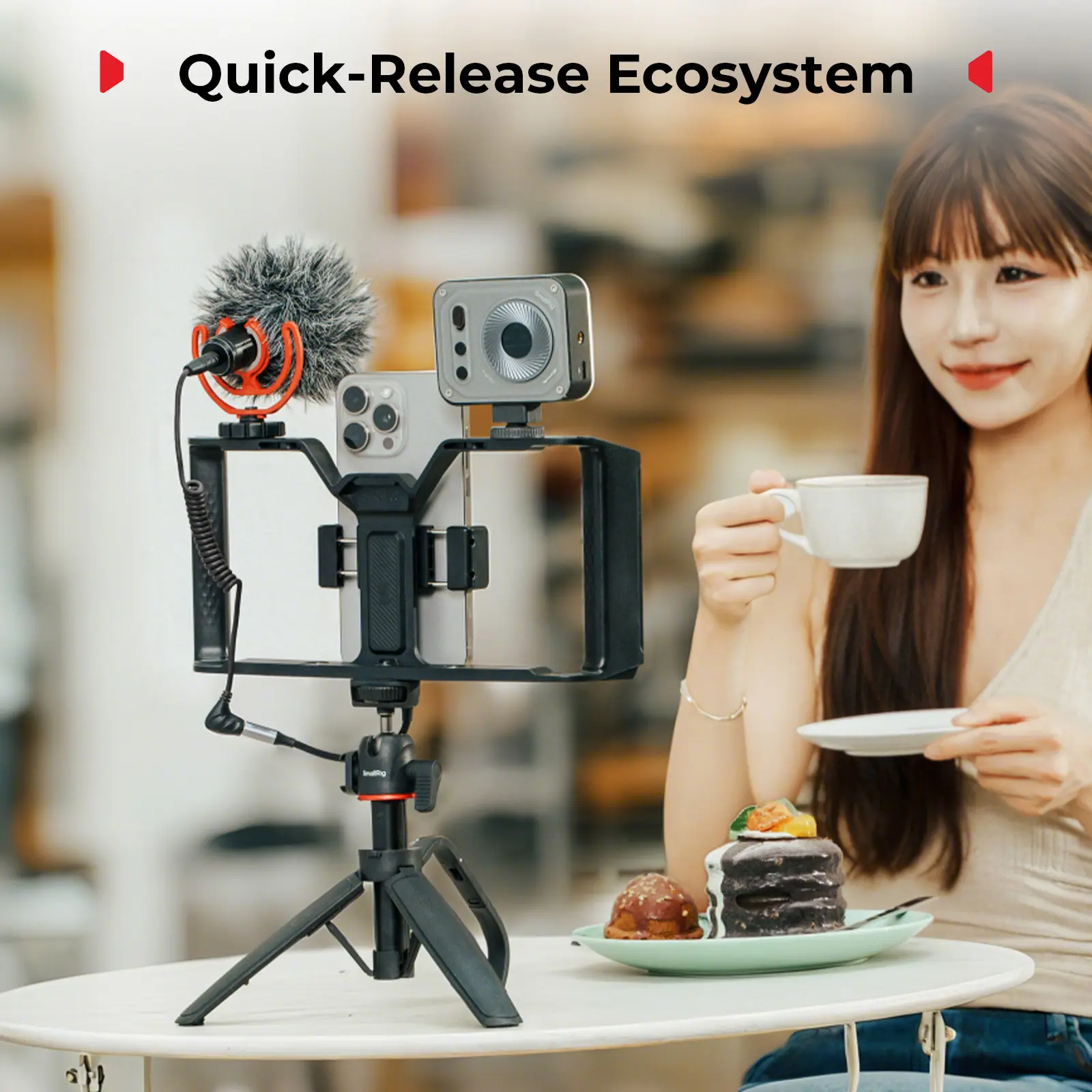 ·Quick-Release Ecosystem: The classic quick-release interface design is compatible with SmallRig's quick-release ecosystem, including the top handle and for Arca quick-release plate. Two sets of wrist and shoulder strap holes are located on the top and bottom for even more convenient shooting.