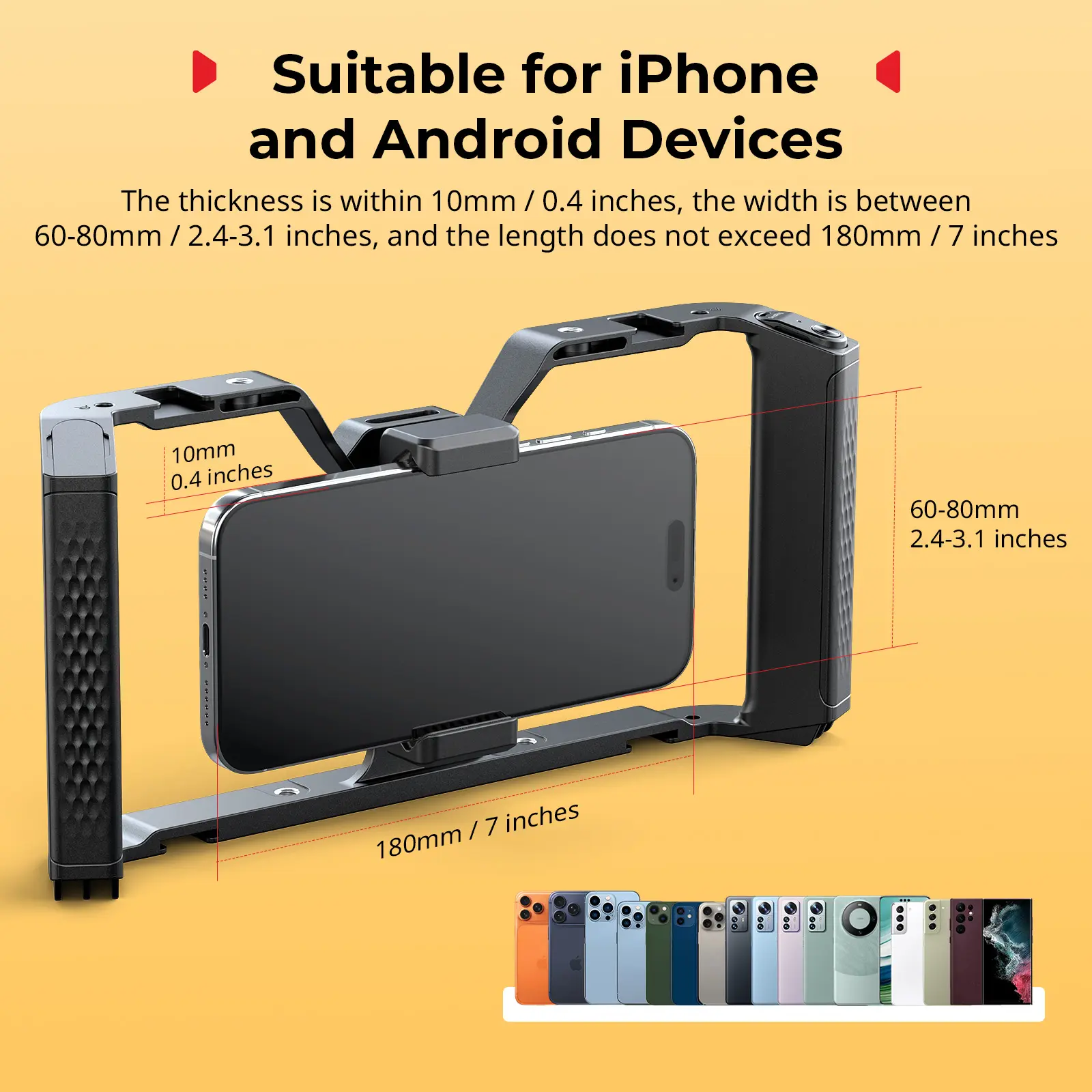 ·Compatibility: Universal phone cage compatible with most mobile phones such as for iPhone 17 / 16 / 15 / 14 / 13 / 12 Pro / Pro Max, for Samsung Galaxy S24 / S23 / S22 Ultra, for Pixel 8/7/6/5 series, for Huawei Mate 60/50/40/P Series, and so on.