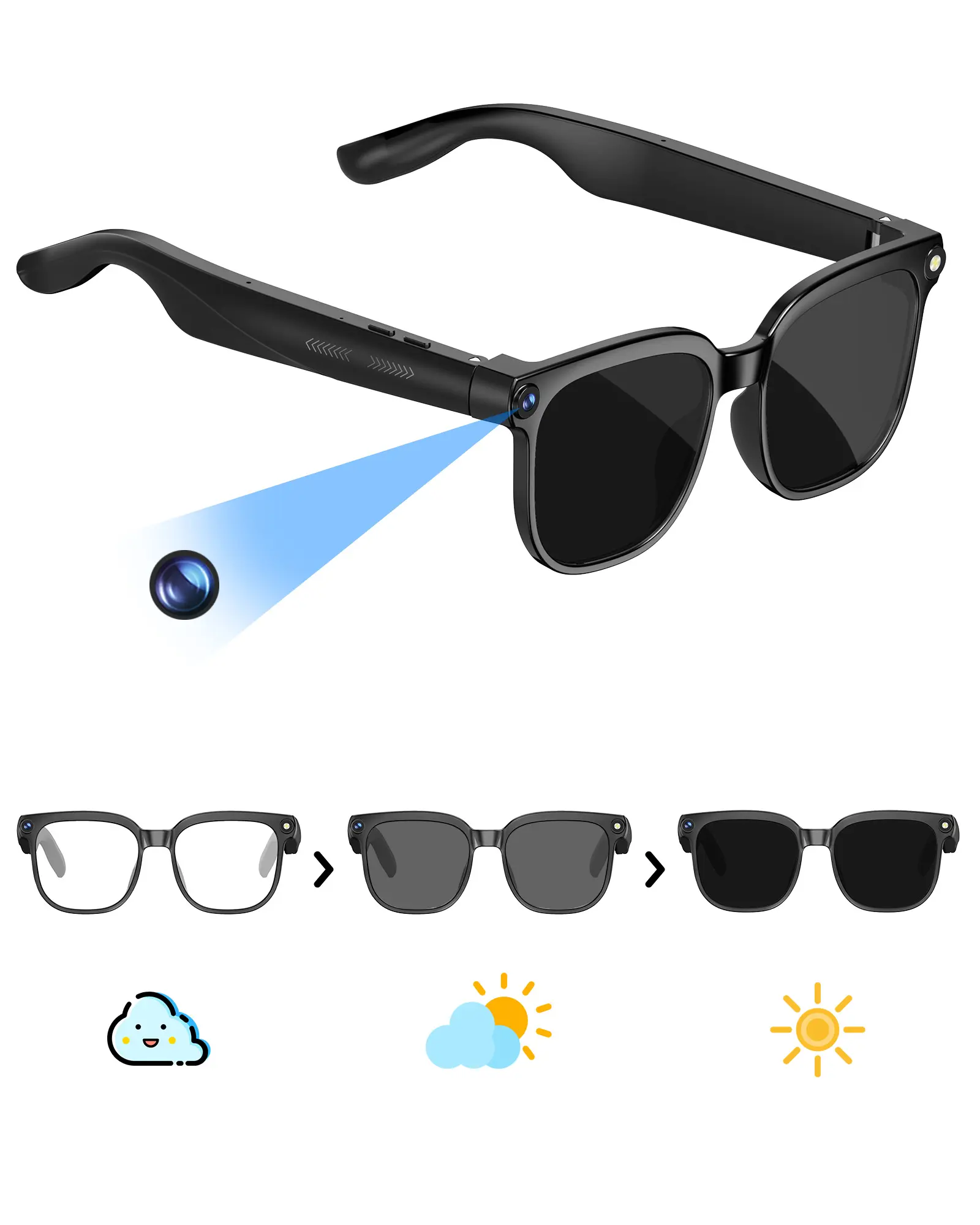 Smart Al Camera Glasses with 8MP 1080P HD Video Recording Photochromic Lenses Button Touch Adjustment for Travel Outdoor Adventures Hands-Free Photography 160+ Languages Real-Time Translation Bluetooth Wireless Wearable UV Protections#aicameraglasses #videorecordingglasses #wireless #uvprotection #handfree