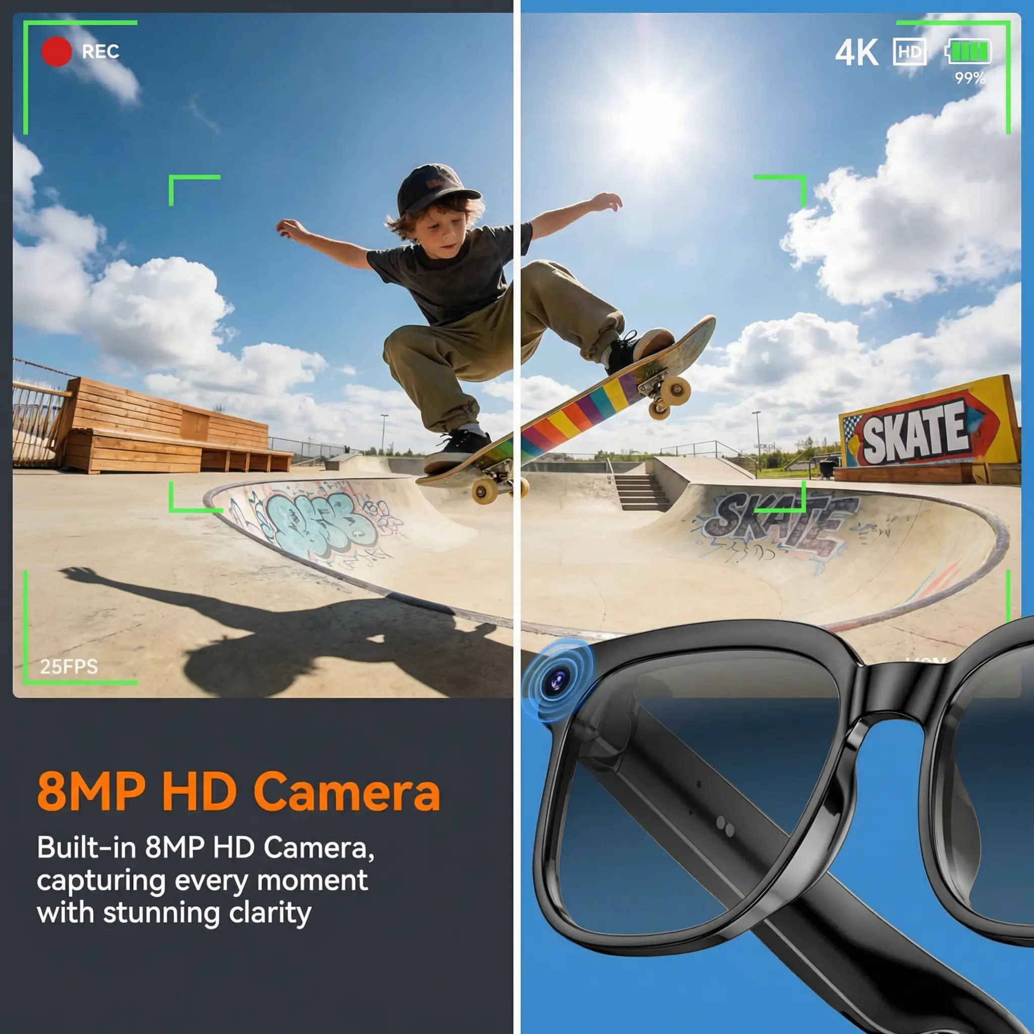 ·Advanced Photography: These Smart Al Glasses feature 8MP photochromic lenses, perfect for hands-free photography. Ideal for travel and outdoor adventures. 📸