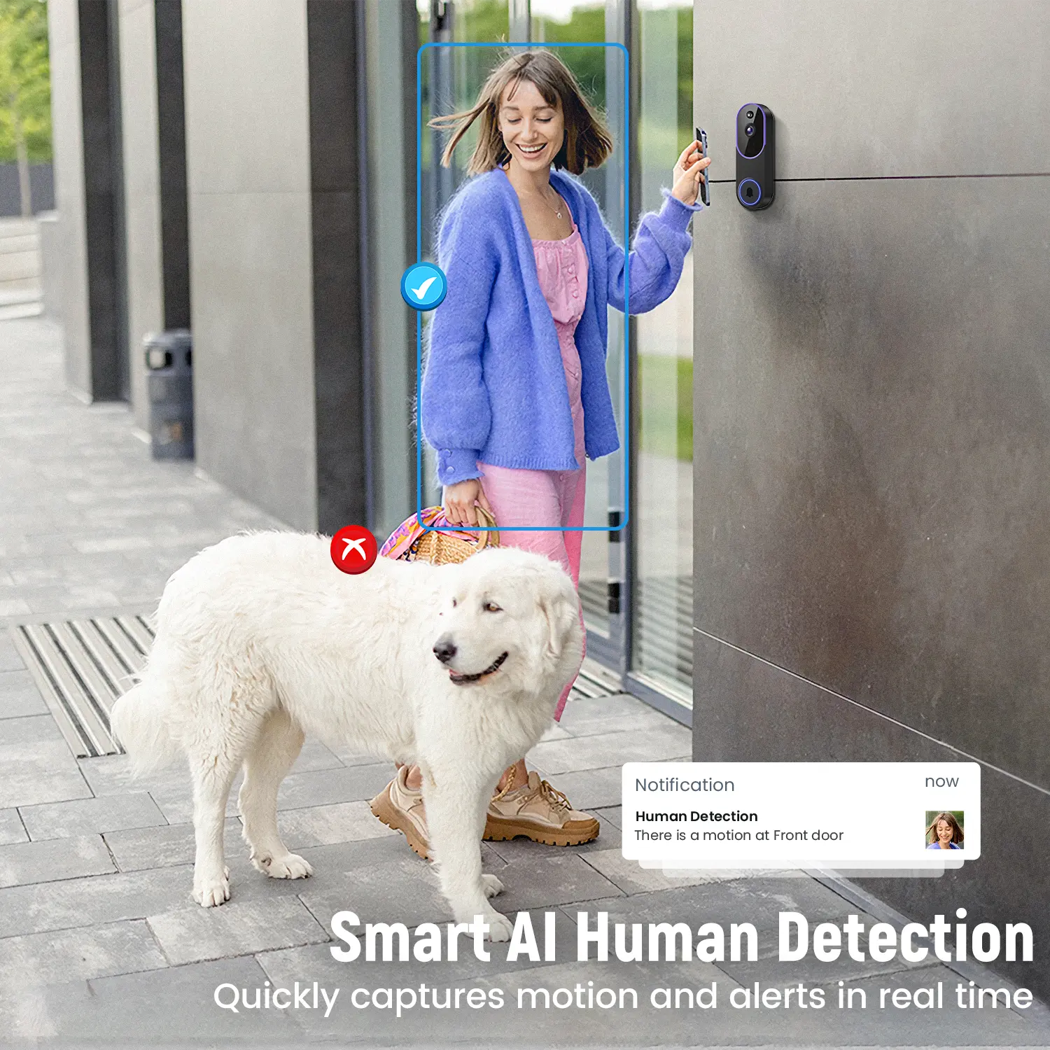 AI-Powered Precision Human Detection: Harness the power of cutting-edge AI technology to accurately recognize human presence, while efficiently ignoring irrelevant motion such as cars and trees.