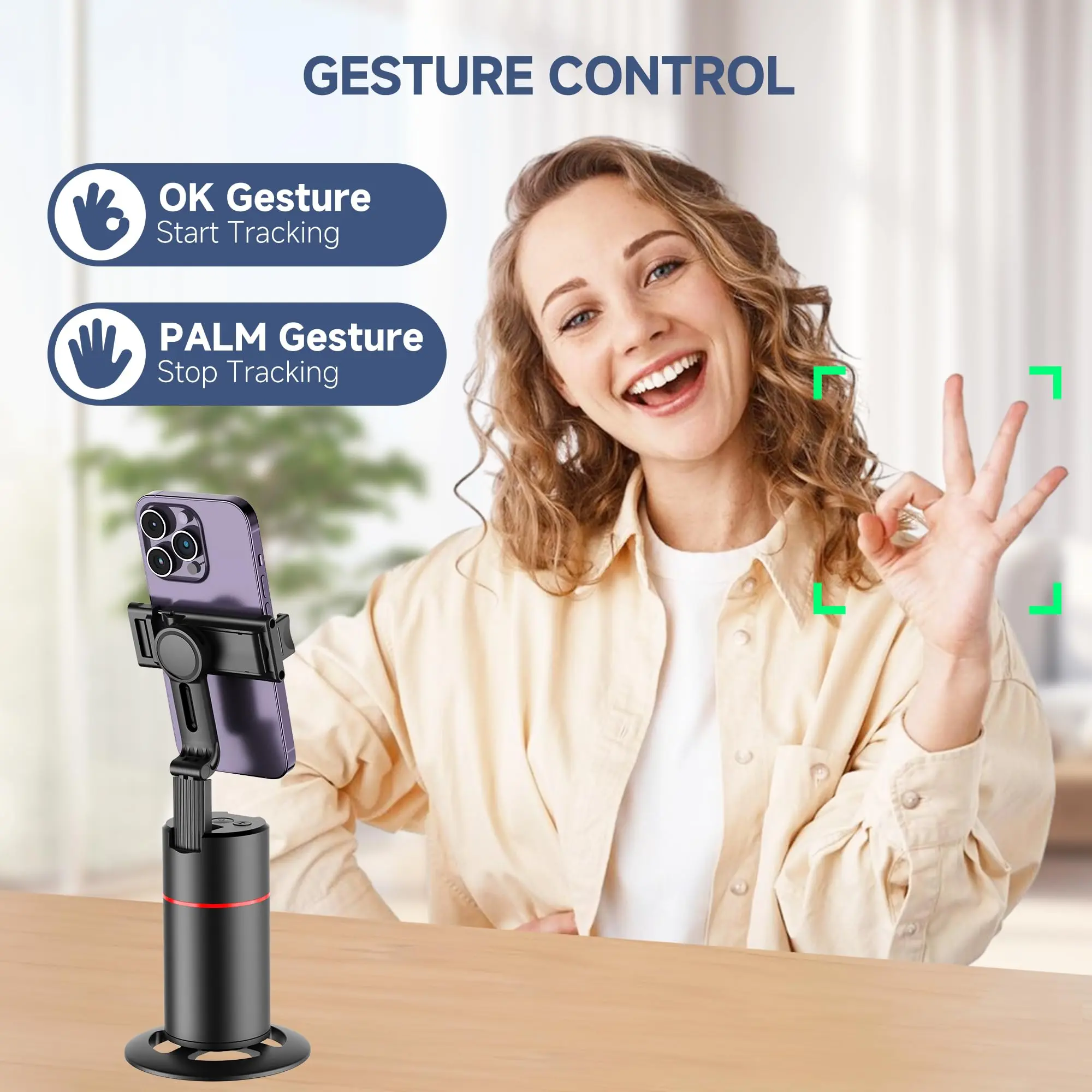 【Smart Gesture Control】 Easily operate with hand gestures—show an "OK" to start recording or an open palm to pause. Perfect for TikTok, Instagram, Facebook, and all live-streaming apps.