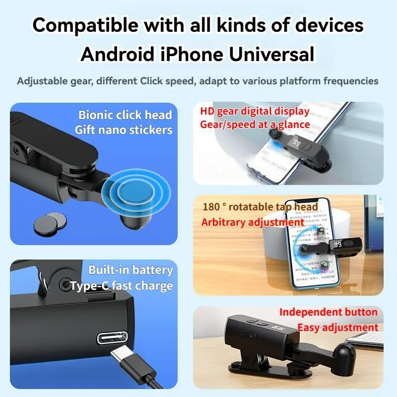 2025 Auto Clicker for Smart Phone,Built-in battery,No Need to Connect to Power Source, used for mobile phone application video live streaming gadget quick click simulate finger continuous click, used for live streaming likes, games, shopping, reward task