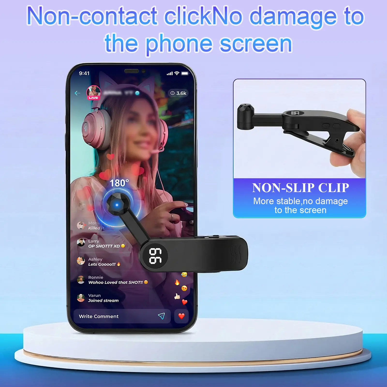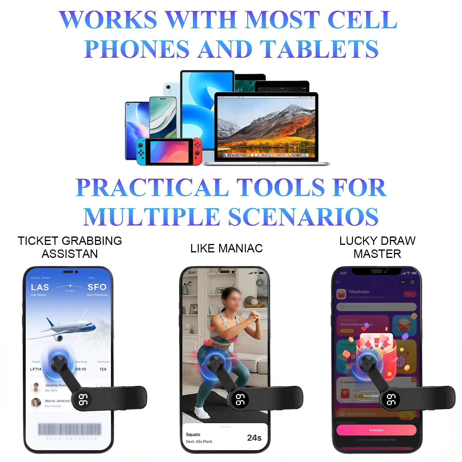Easy to Use: Just attach the clicking head or use the screen clip to simulate automatic finger taps, freeing your hands. Ideal for gaming, live streaming, and efficiently completing tasks — truly effective and user-friendly.