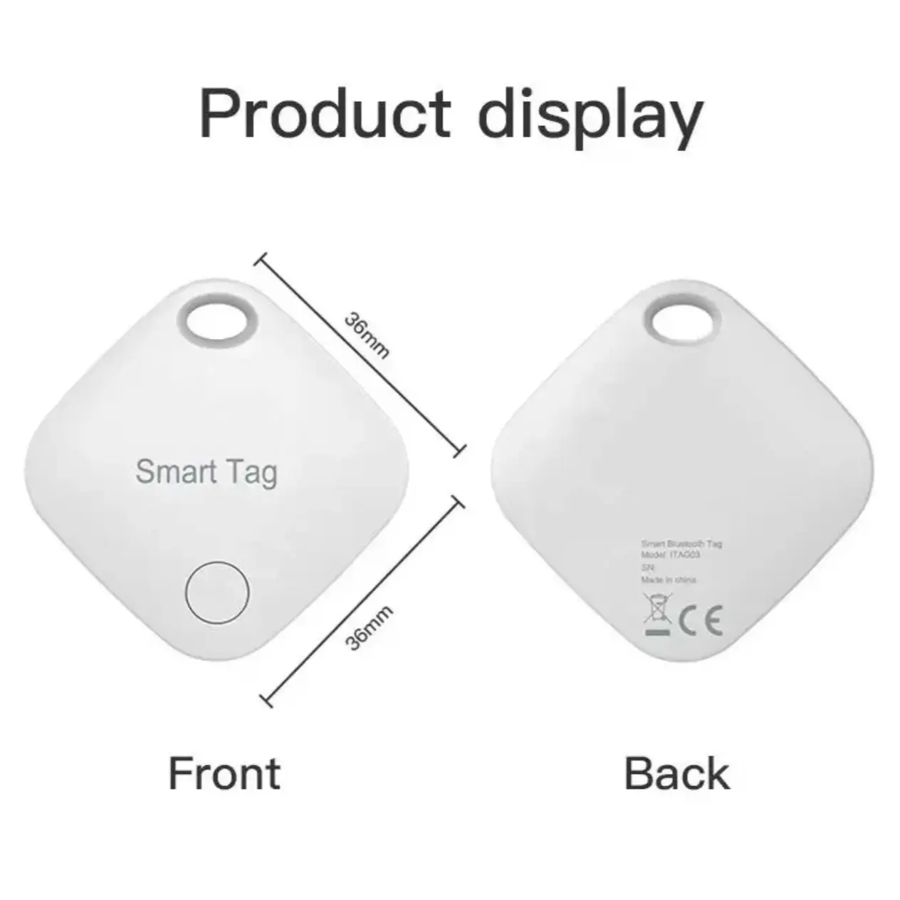 The Smart Bluetooth Tracker is made of durable ABS plastic and has a compact design that is perfect for attaching to keys, bags, or other valuables. The product is available in four colors: white, black, pink, and green. The dimensions of the product are 36 × 36 × 7.8 mm, and it weighs only 11 g (0.39 ounces).