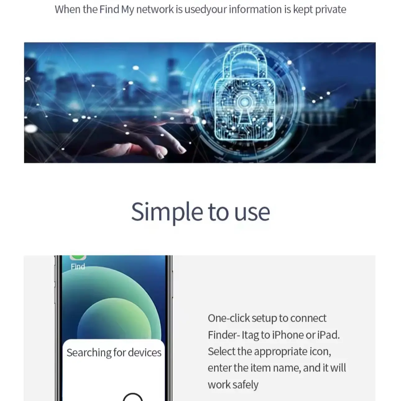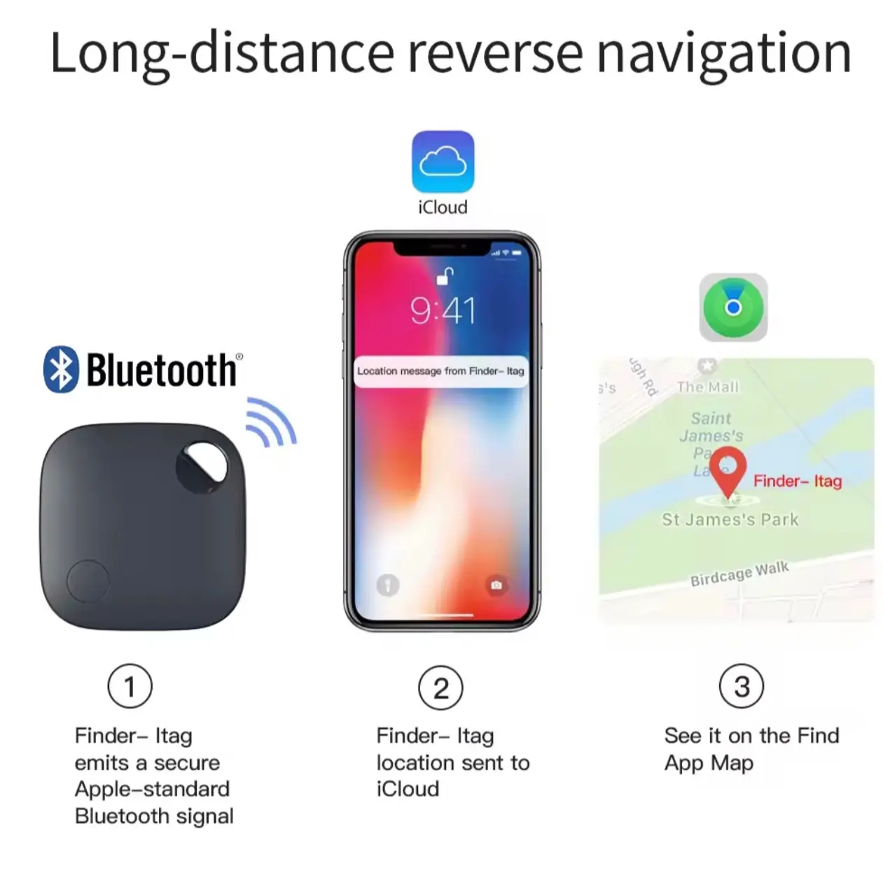 The Smart Bluetooth Tracker is a lightweight and compact device that is easy to carry around. It is a Bluetooth device that sends out a secure Bluetooth-compatible signal that nearby devices in the Find My network can detect. The signal is then sent to iCloud, allowing you to view the item on a map. The process is entirely anonymous and encrypted for your privacy.