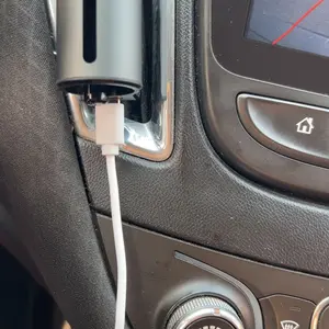 This little gadget charged works as described.it comes with 3 vials of fragrance which smelled horrible to me too strong but I emptied them out cleaned with soap nd refilled with water nd my perfume now smells really nice in my car. Very affordable. Comes with usb charger cord