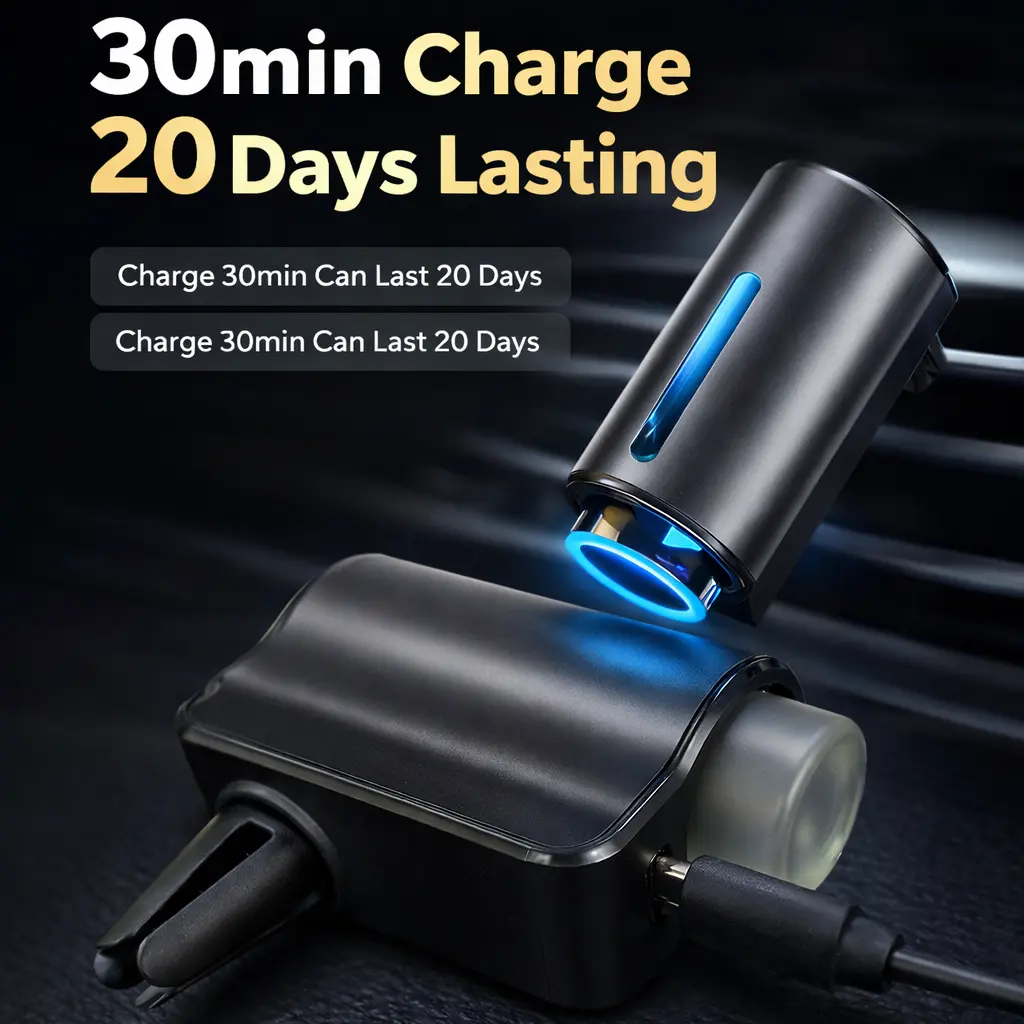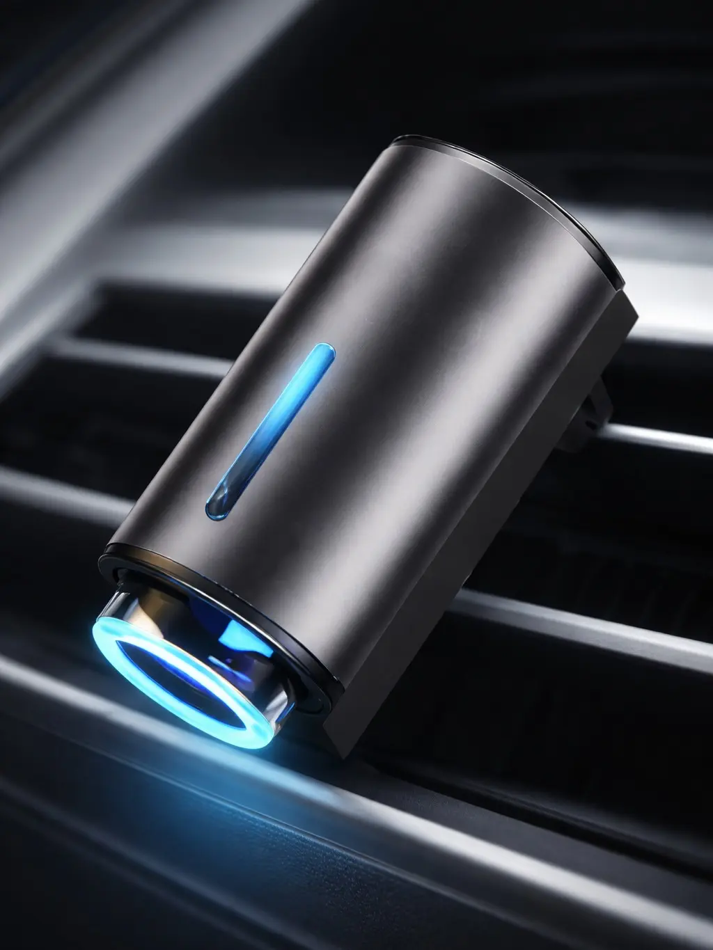 This smart car air freshener automatically turns on when your car starts and shuts off when parked — no manual operation needed.