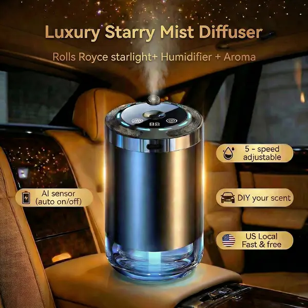 US Car Diffuser, Starry Sky Car Light, Car Humidifier USB, DIY Scent Car Air Freshener, Universal Car Interior Accessories, Portable Car Purifier