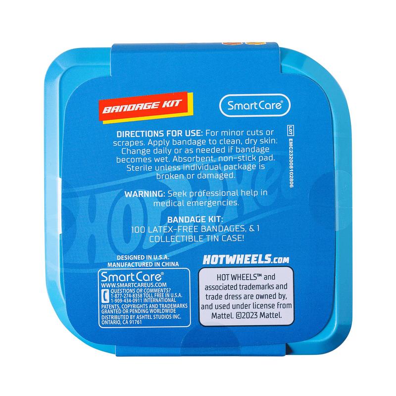 5. Smart Care Hot Wheels Latex-Free Bandages with Reusable Storage Tin, 100CT